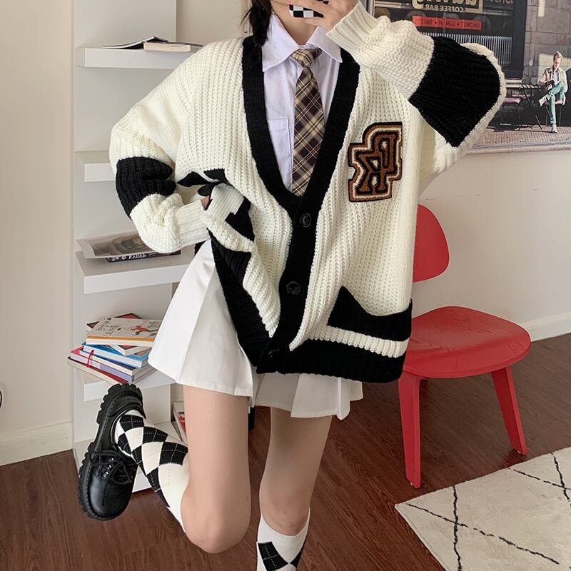 スタイルルーズスタンダードセーター オータムVネックカーディガントップス ロング レトロ 秋物 モンロー7032868347