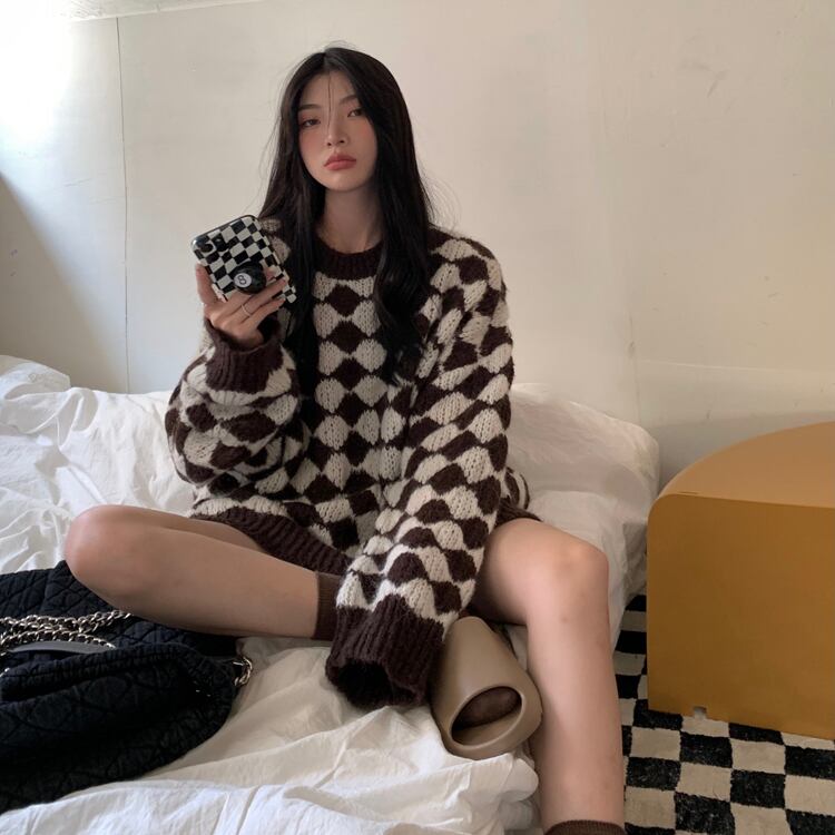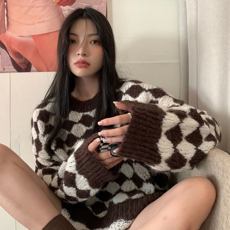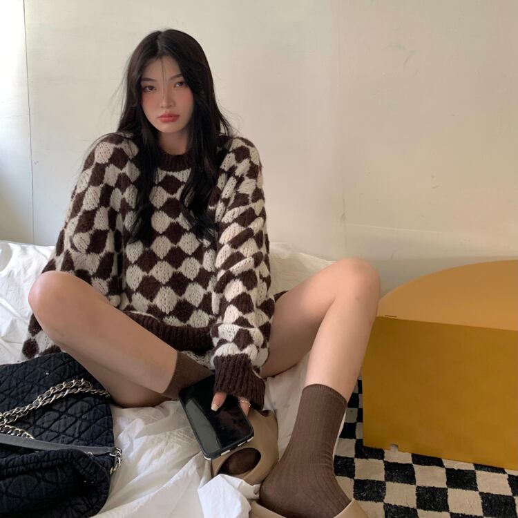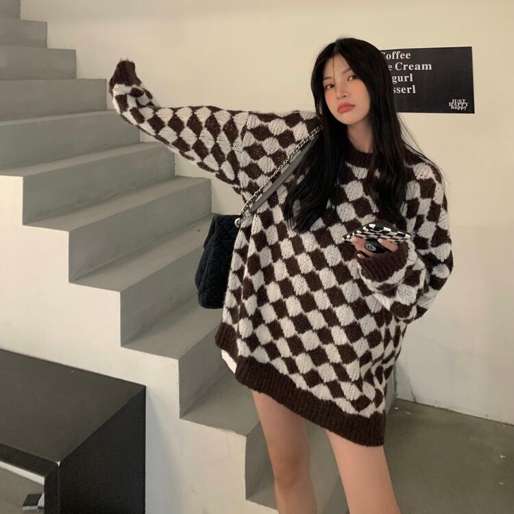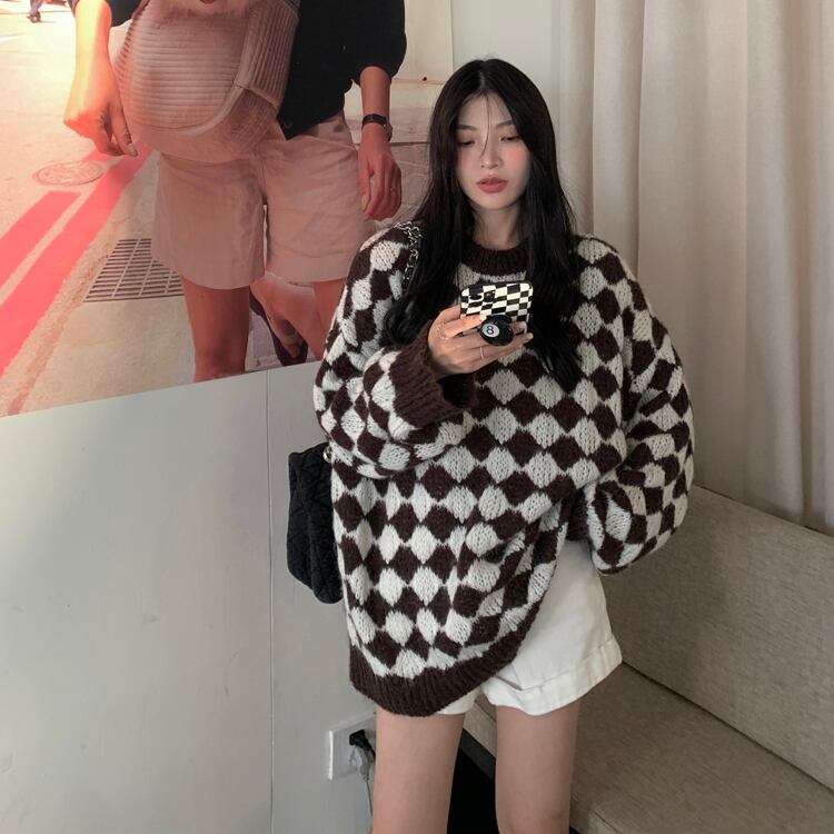 スタンダードプルオーバー セーター オータムルーズニットトップス ロング レトロ 秋物 モンロー3390239618