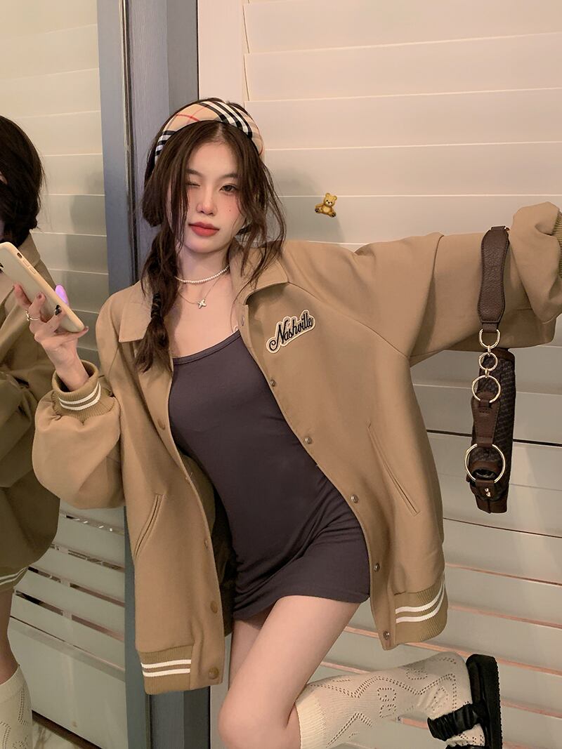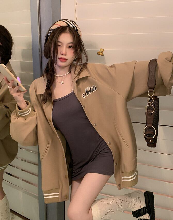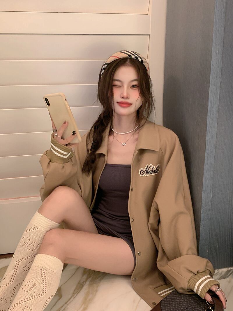 スタンダードカーキジャケット オータムルーズトップス レトロ 秋物 モンロー16863699108