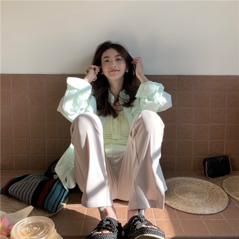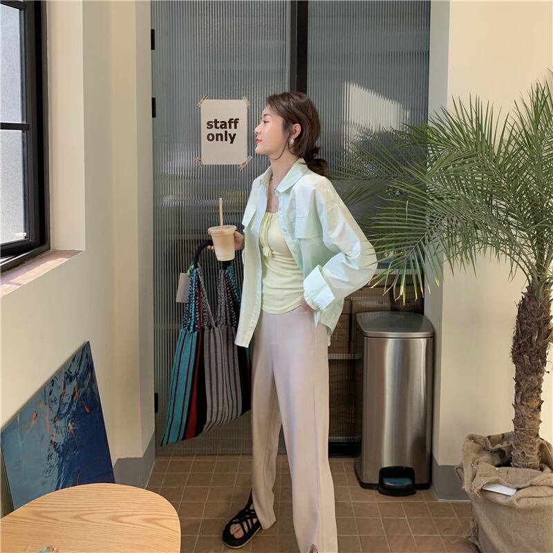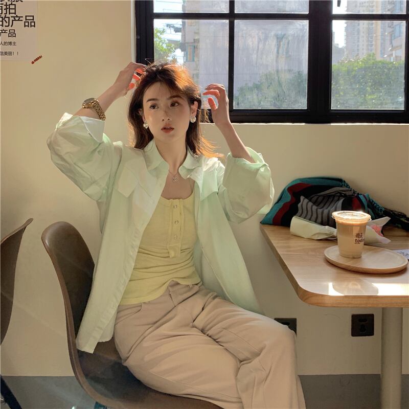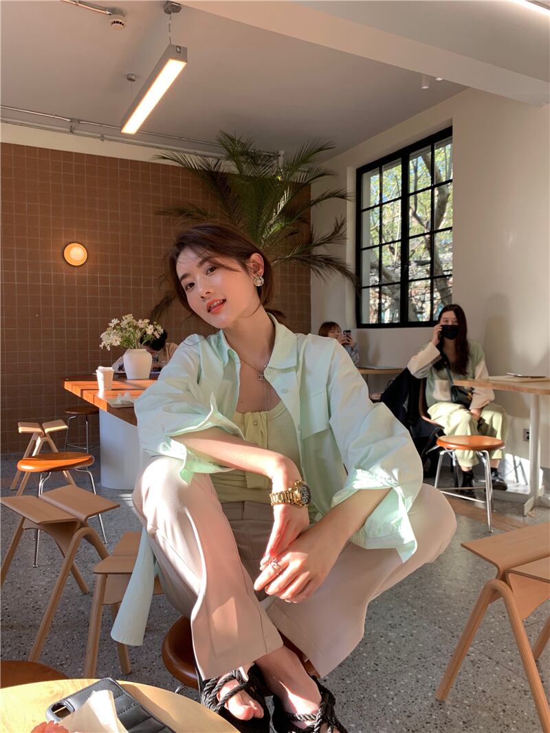グリーン薄手シャツ ルーズジャケット オータムトップス 秋物 モンロー90186948882