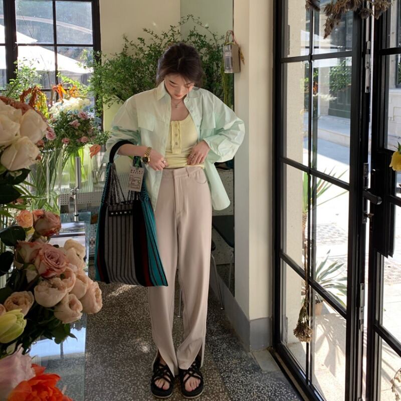 色:ミントグリーンのシャツ,アプリコットパンツ