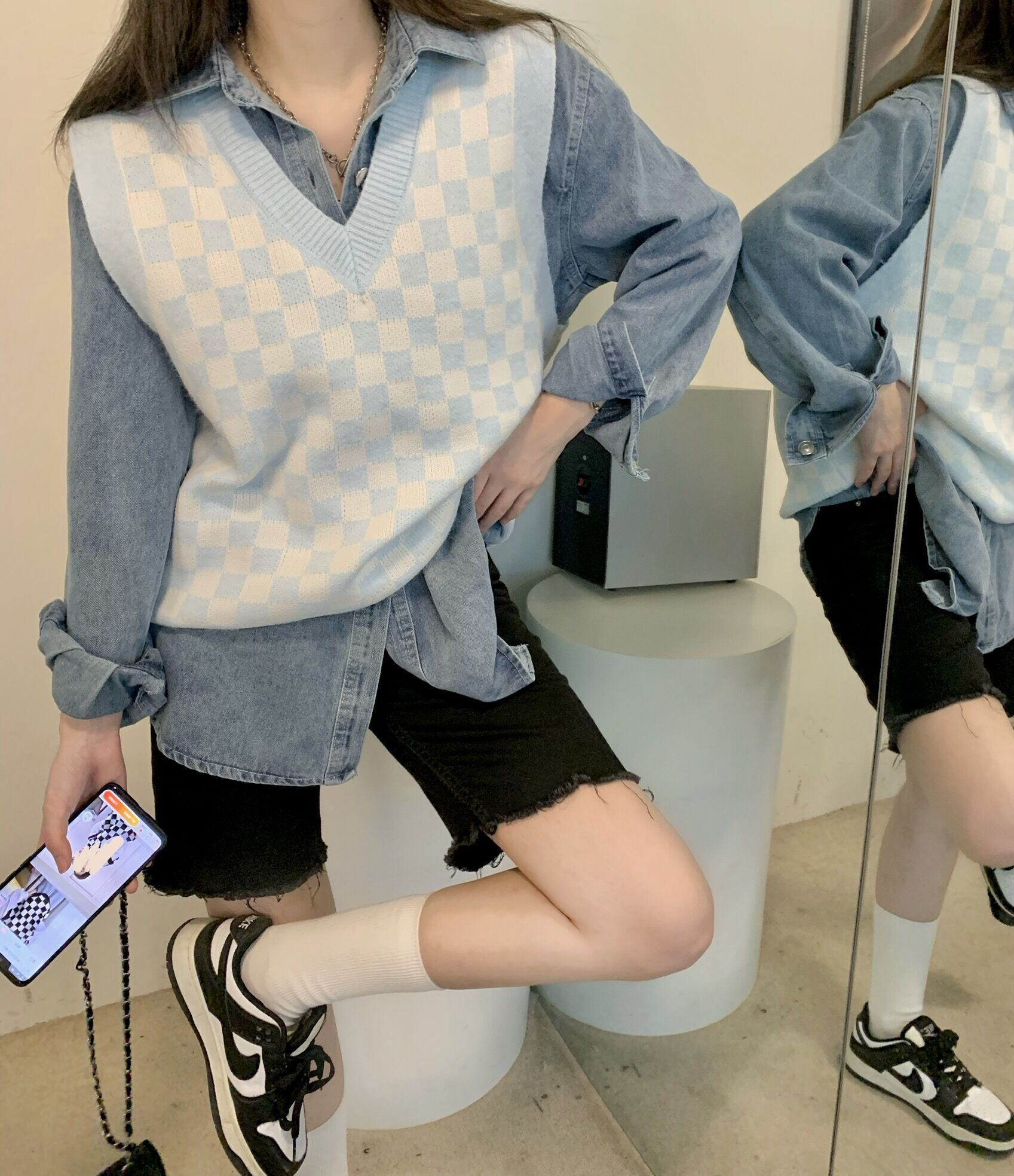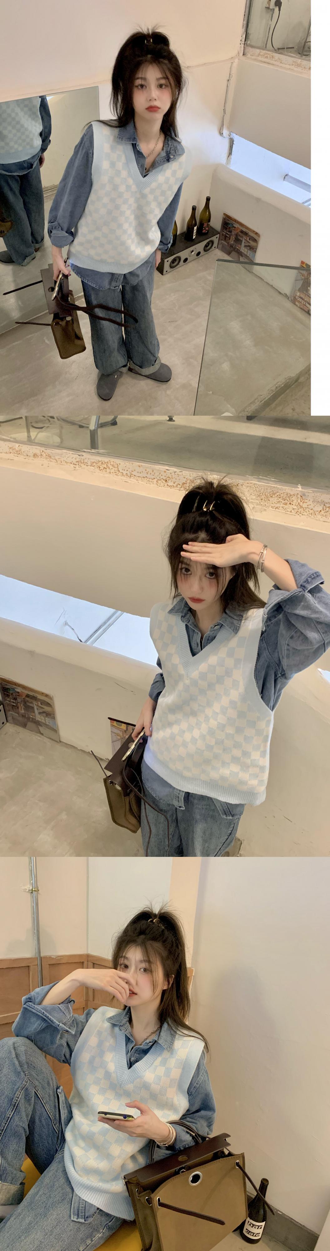 ニットVネック薄手セーター オータムトップス 秋物 モンロー68611036490