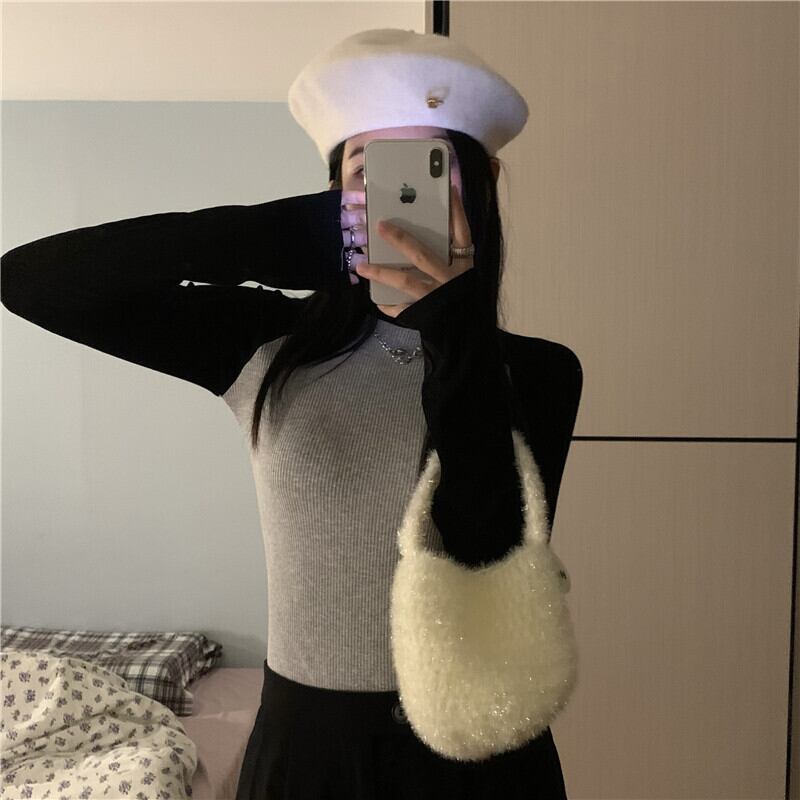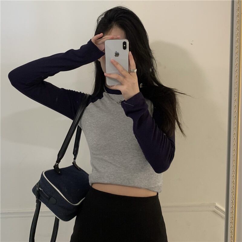 スタンダードオータムTシャツ シャツ スリムプルオーバー ロング レトロ 秋物 モンロー34996031343