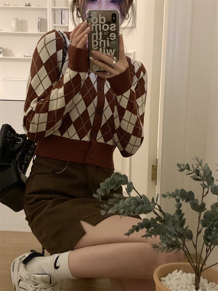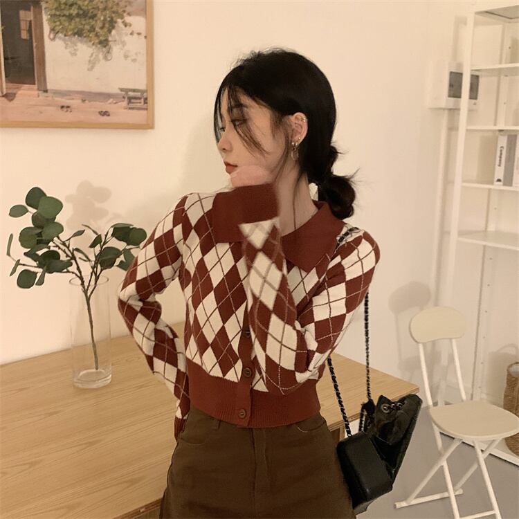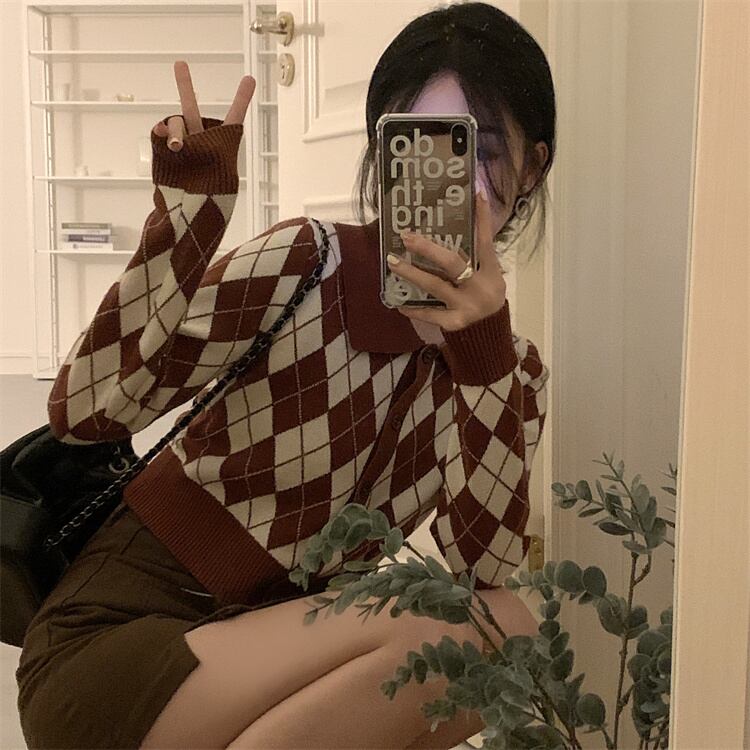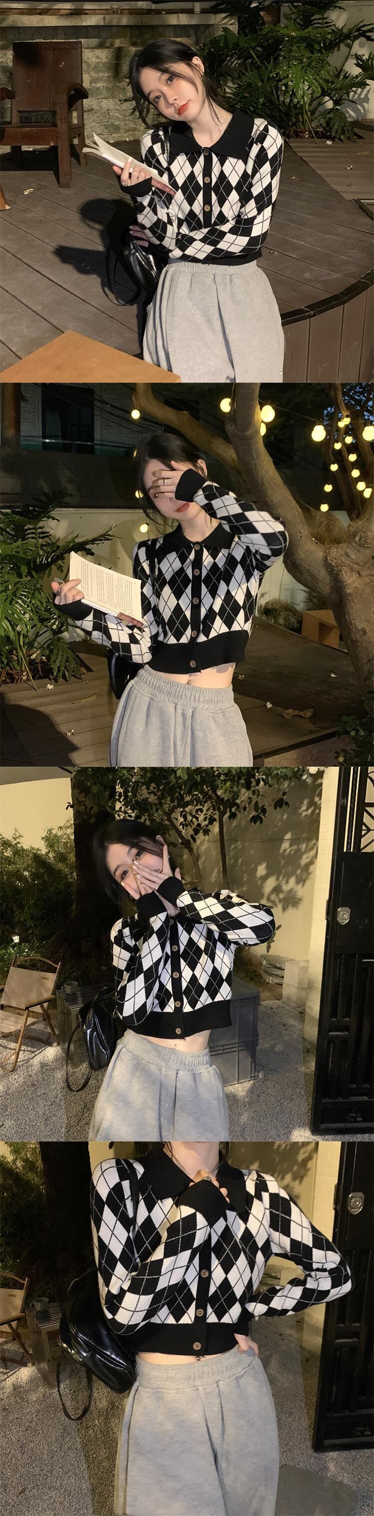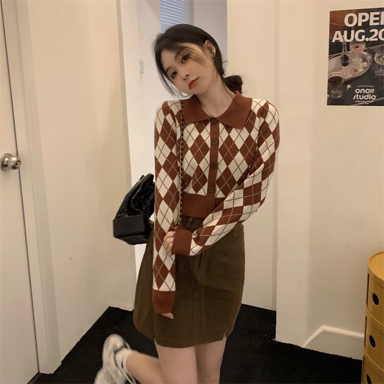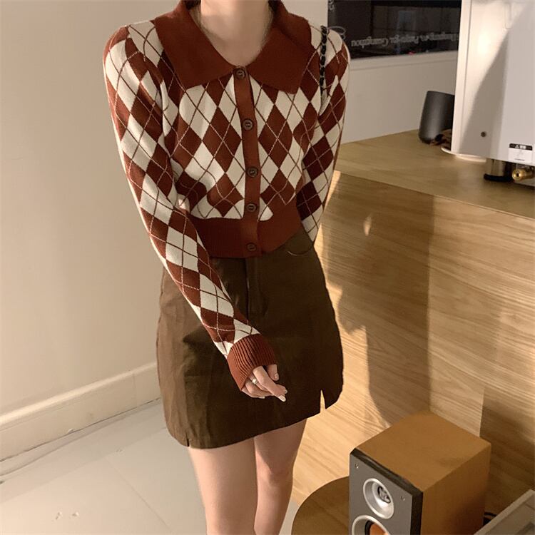 スタイルカラーニットカーディガンオータムセーター コート クロップトップ トップス ロング 秋物 モンロー8293481761