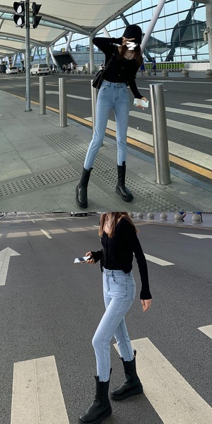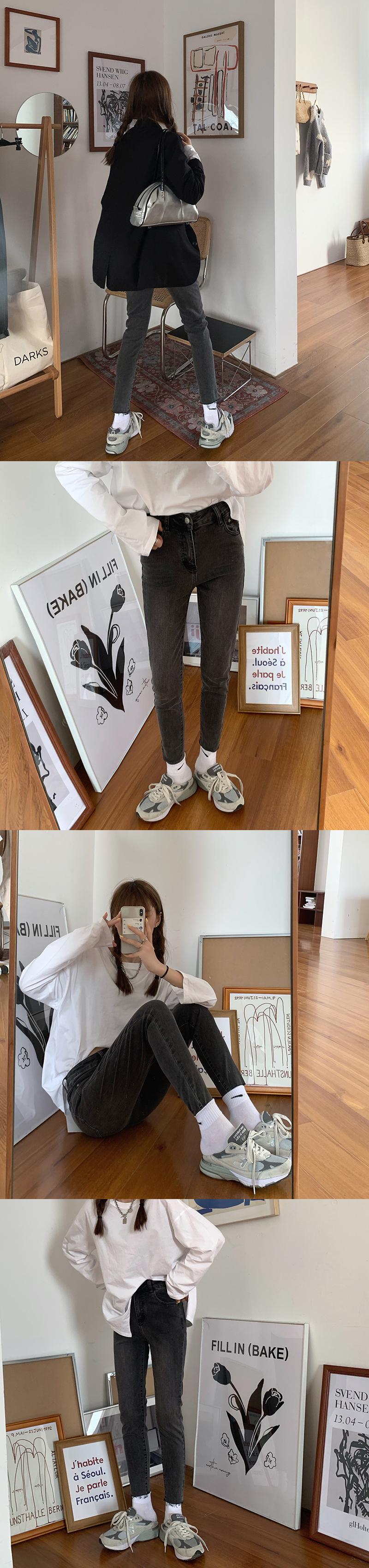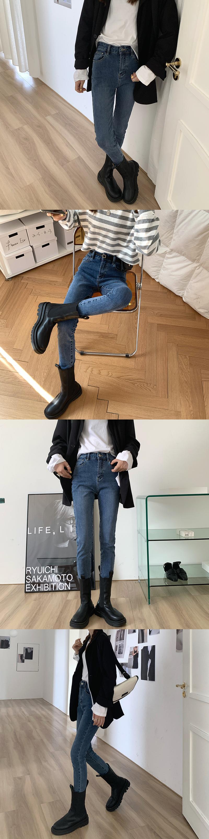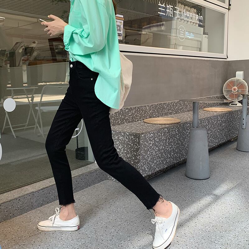 ブルーハイウェストウェストスリムクロップドジーンズ スプリングオータム薄手パンツ 春物 秋物 モンロー74360857562