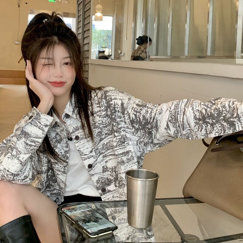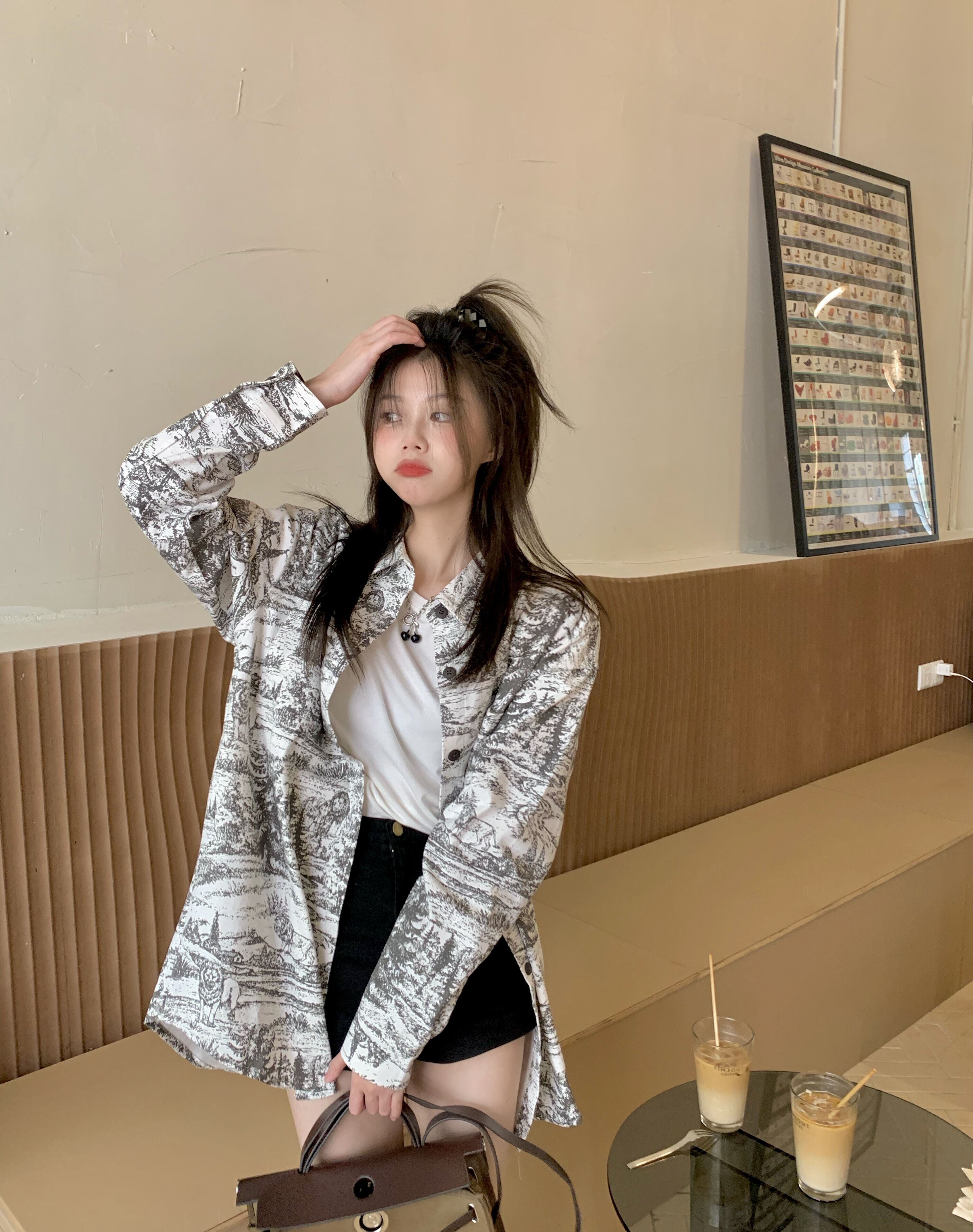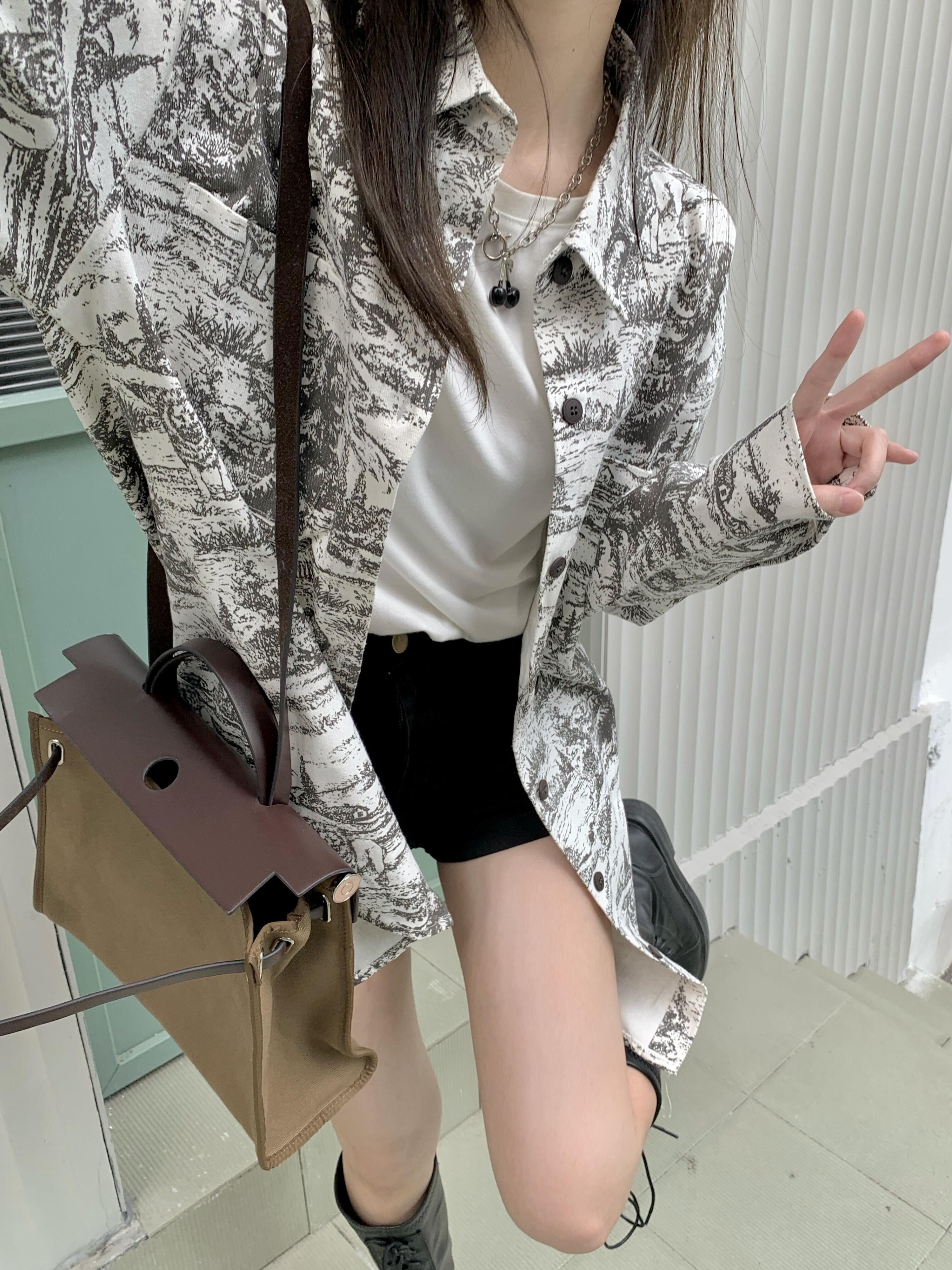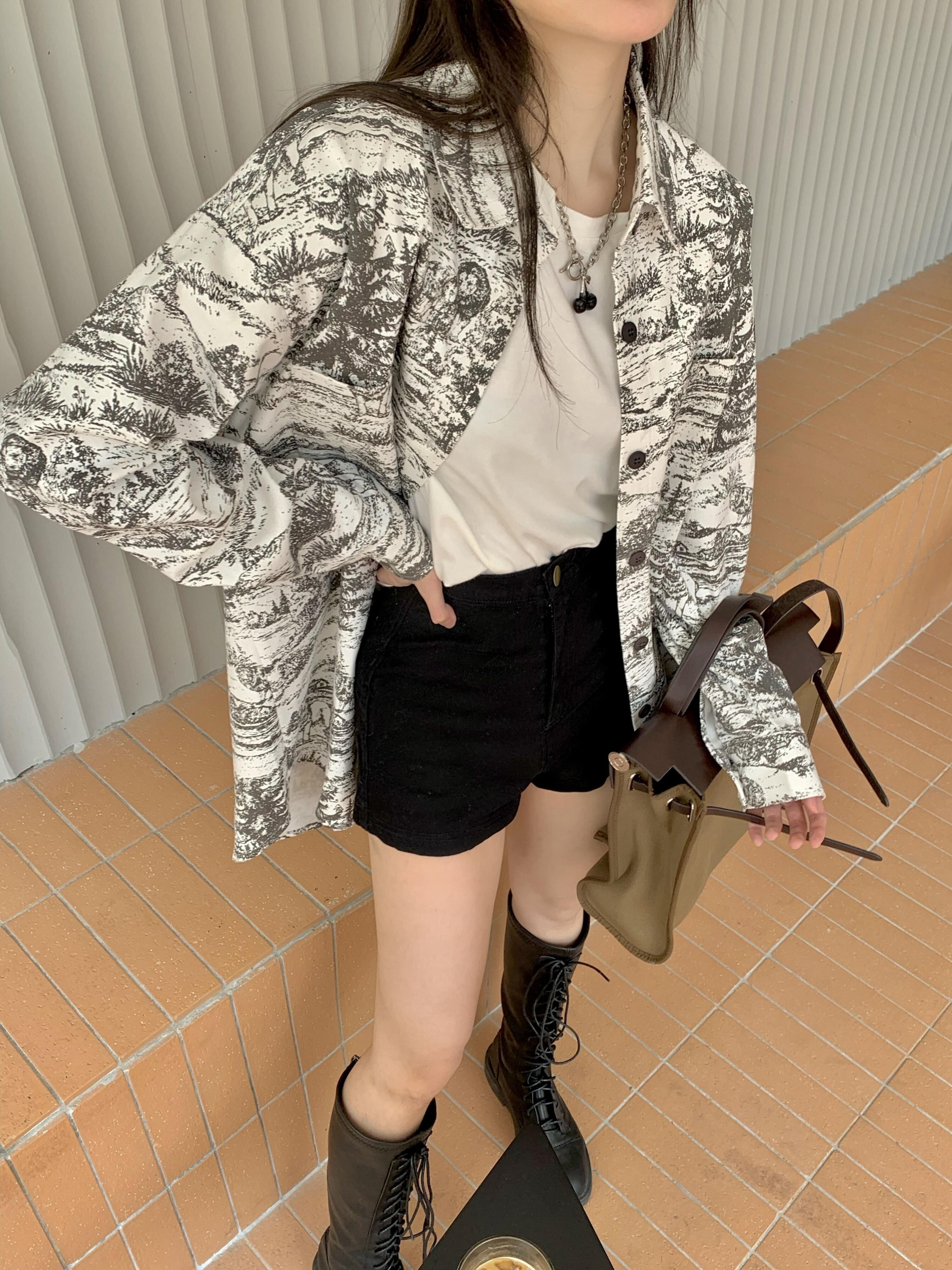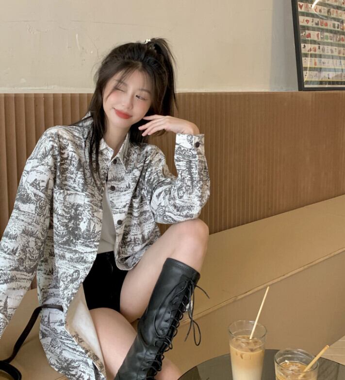 プリントルーズシャツ 薄手ジャケット オータムカジュアルトップス 秋物 モンロー56984522570