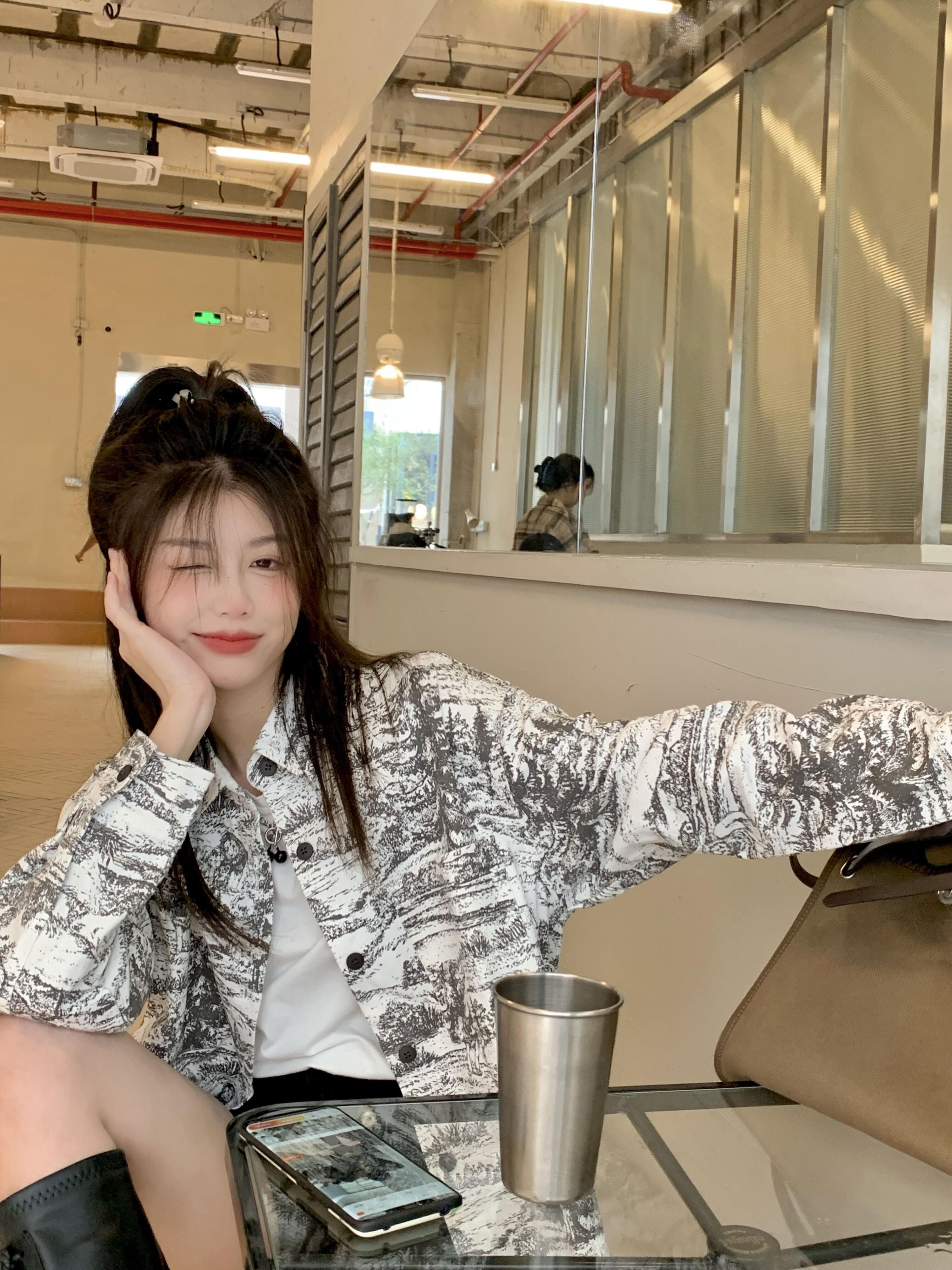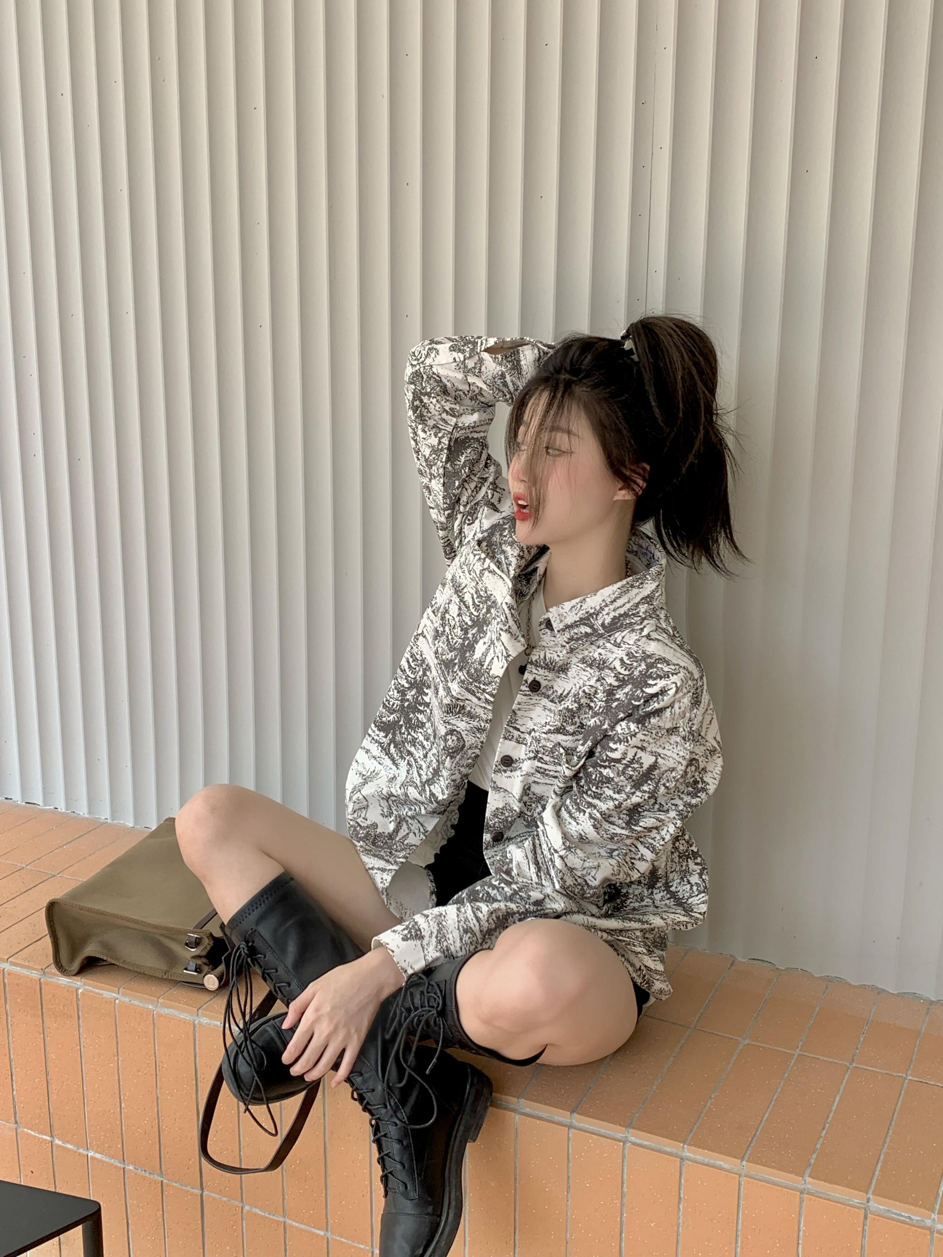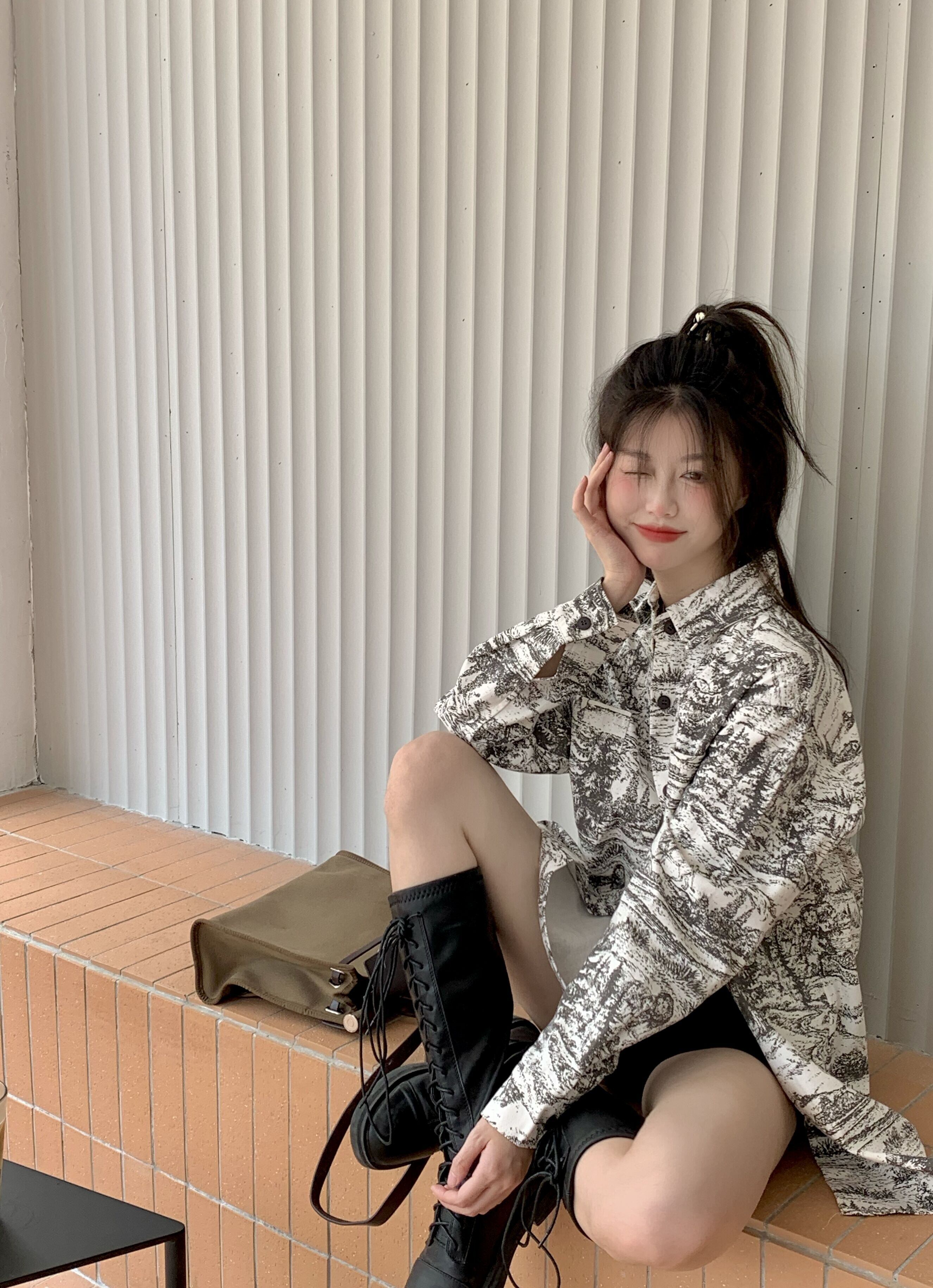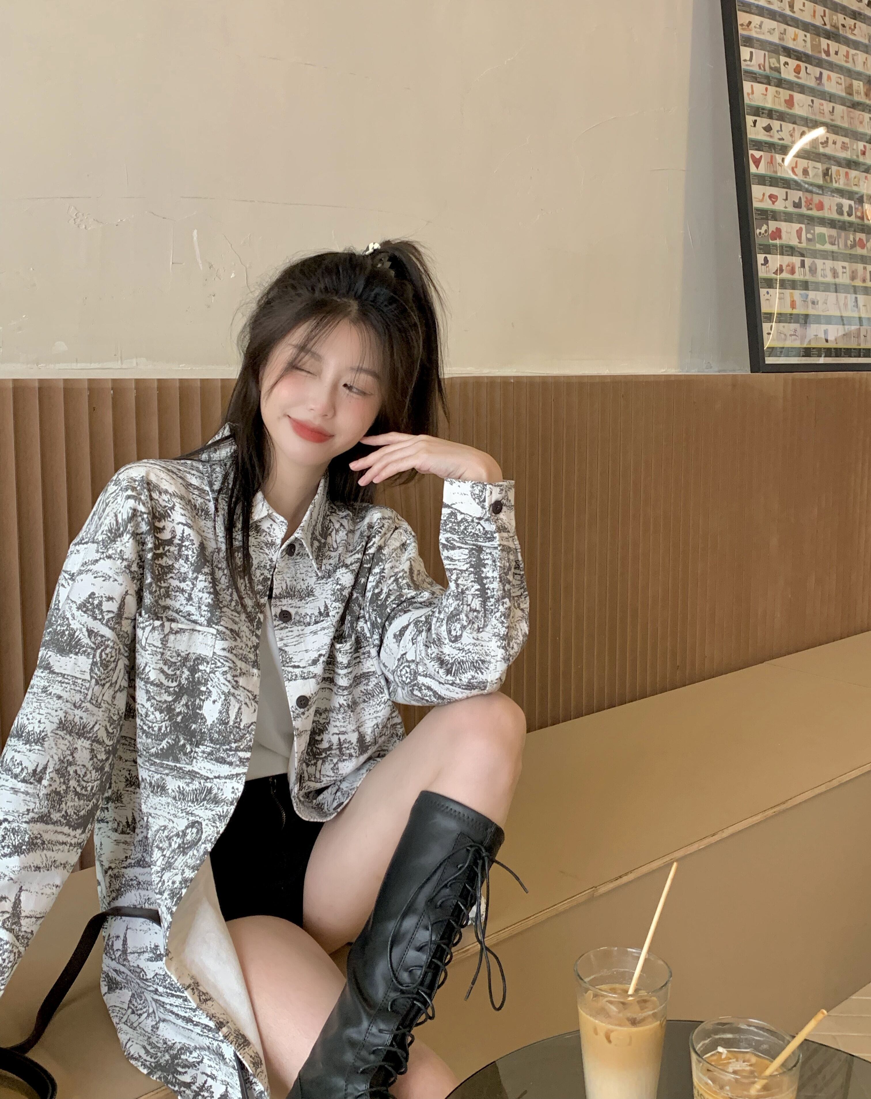 プリントルーズシャツ 薄手ジャケット オータムカジュアルトップス 秋物 モンロー56984522570