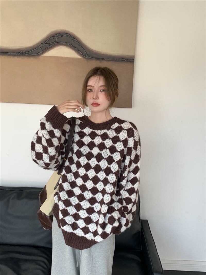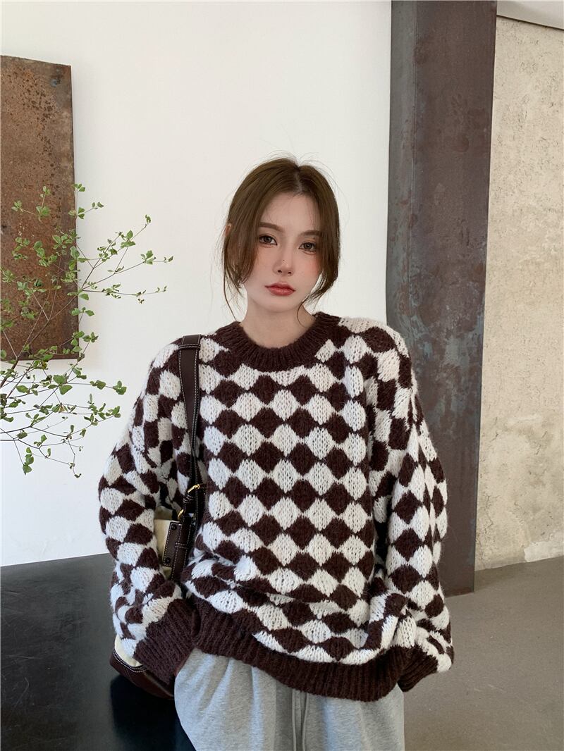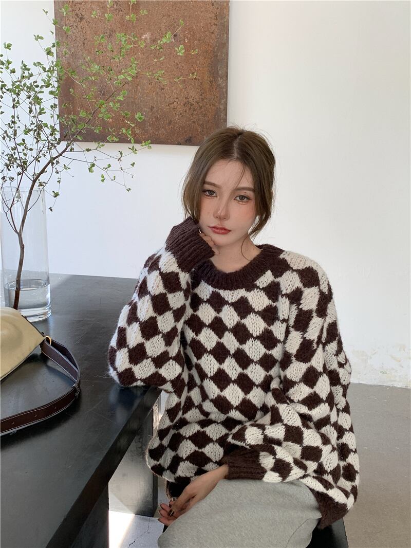 スタンダードニットセーター コート オータムルーズプルオーバー トップス レトロ 秋物 モンロー48304314695