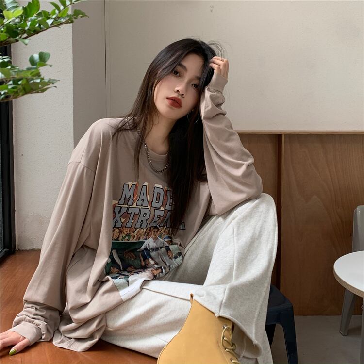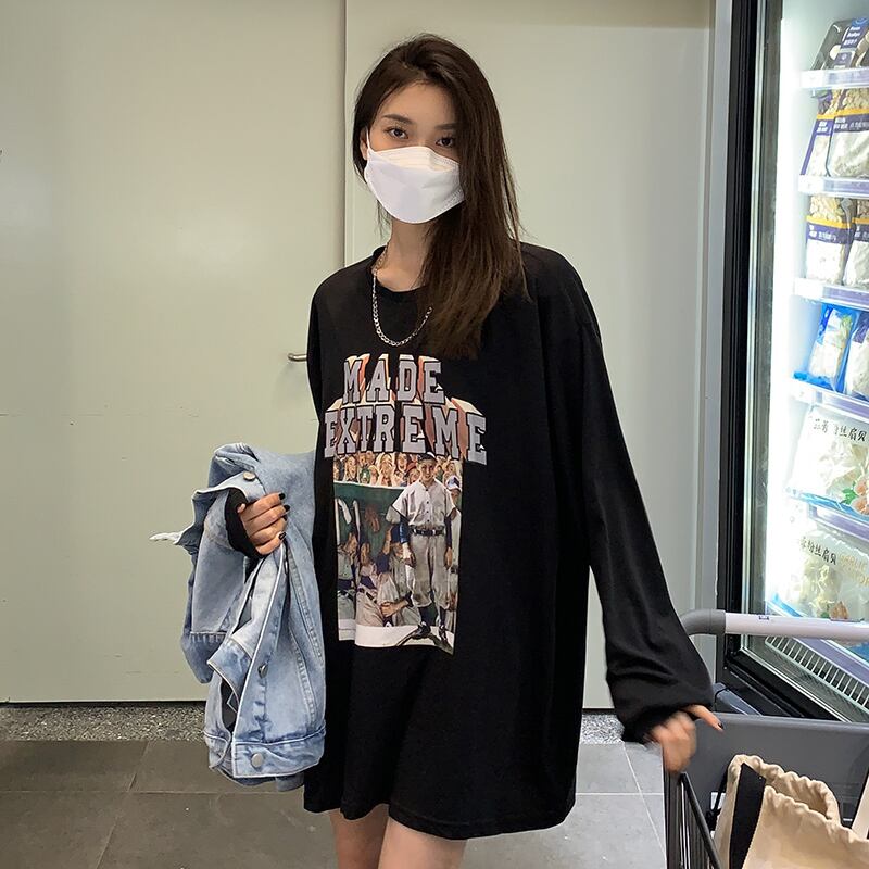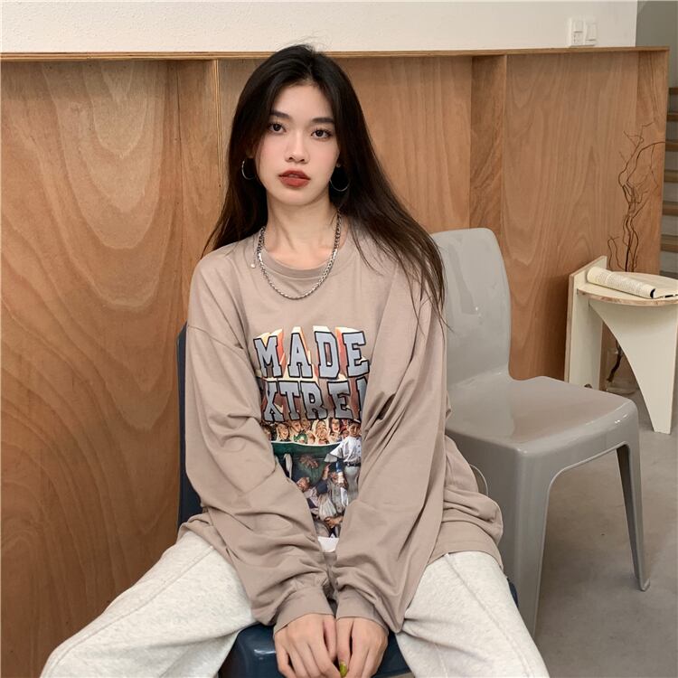 オータムスタンダードトップス ルーズプリントTシャツ ロング レトロ 秋物 モンロー91232855935