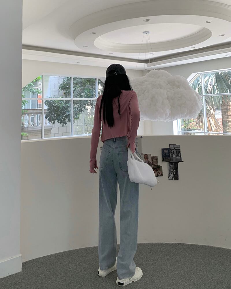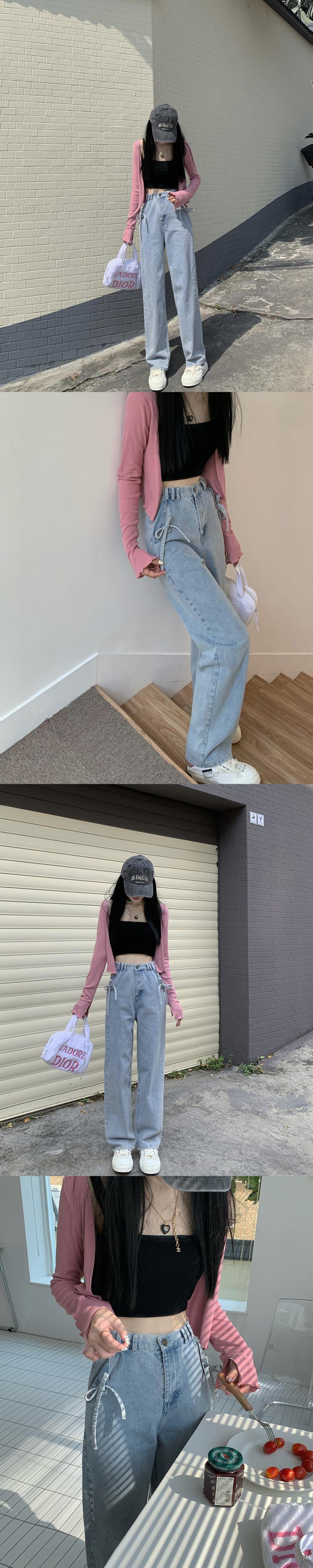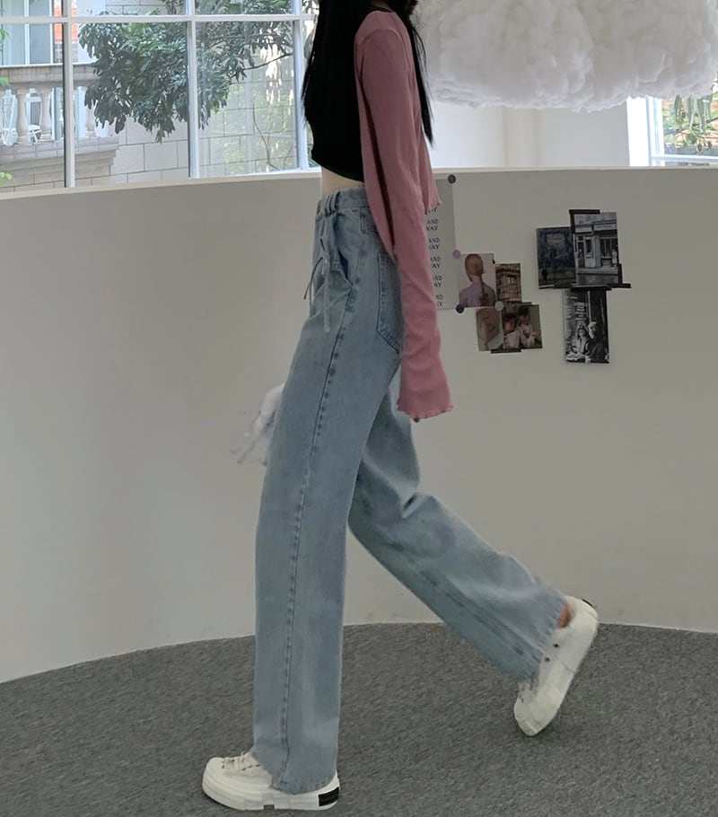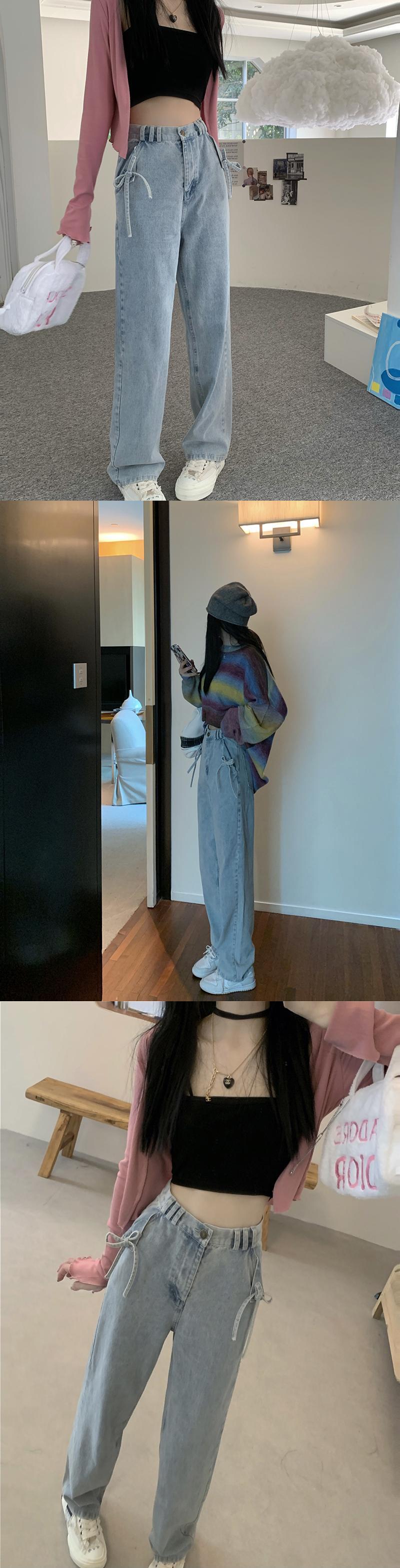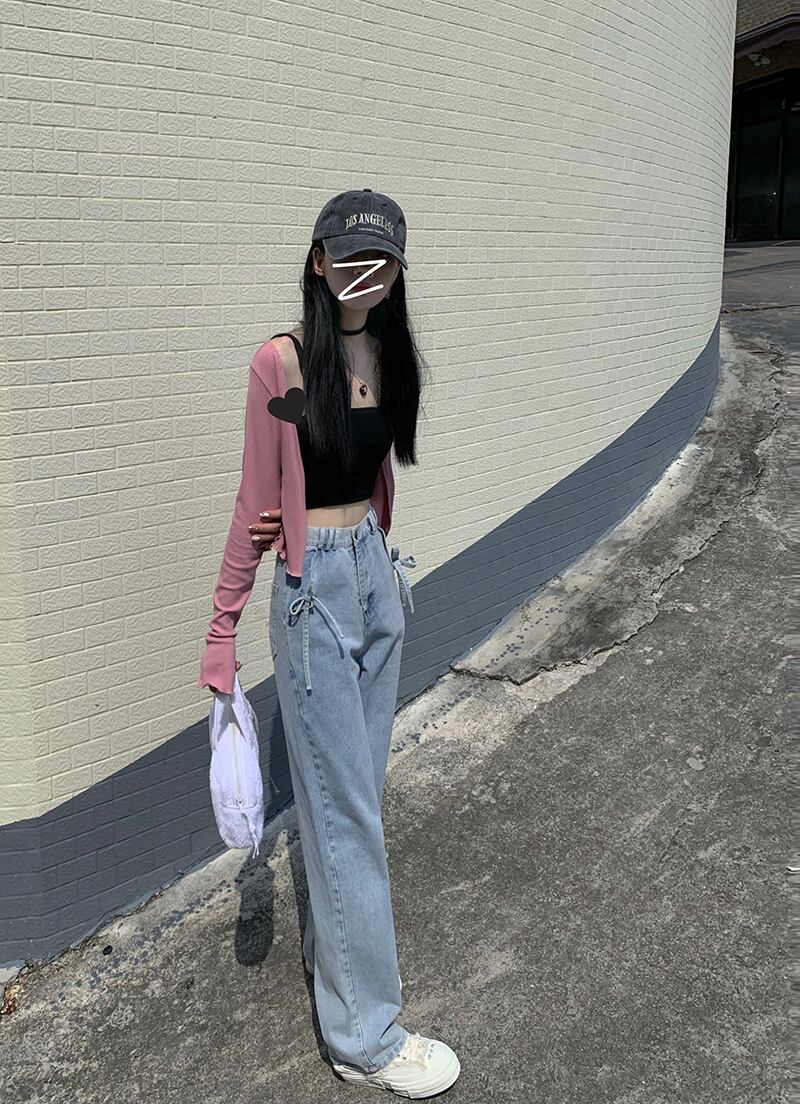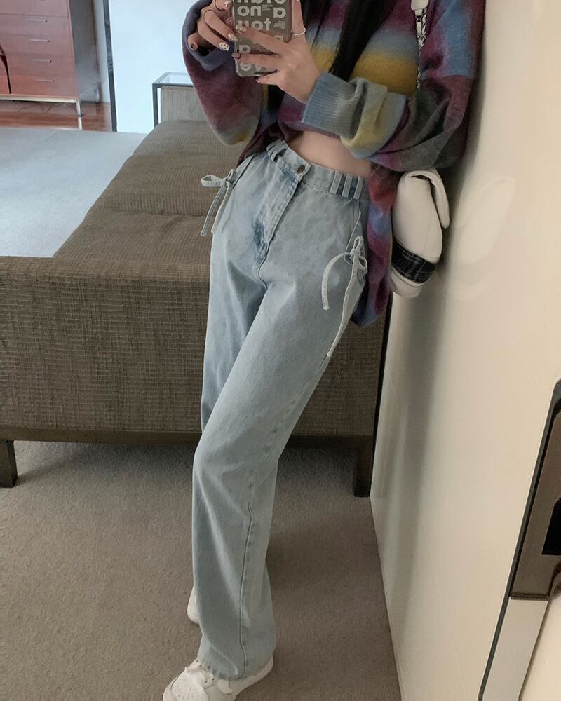 ブルーハイウェストウェストスリムルーズジーンズ スプリングオータムパンツ 春物 秋物 モンロー63430874462