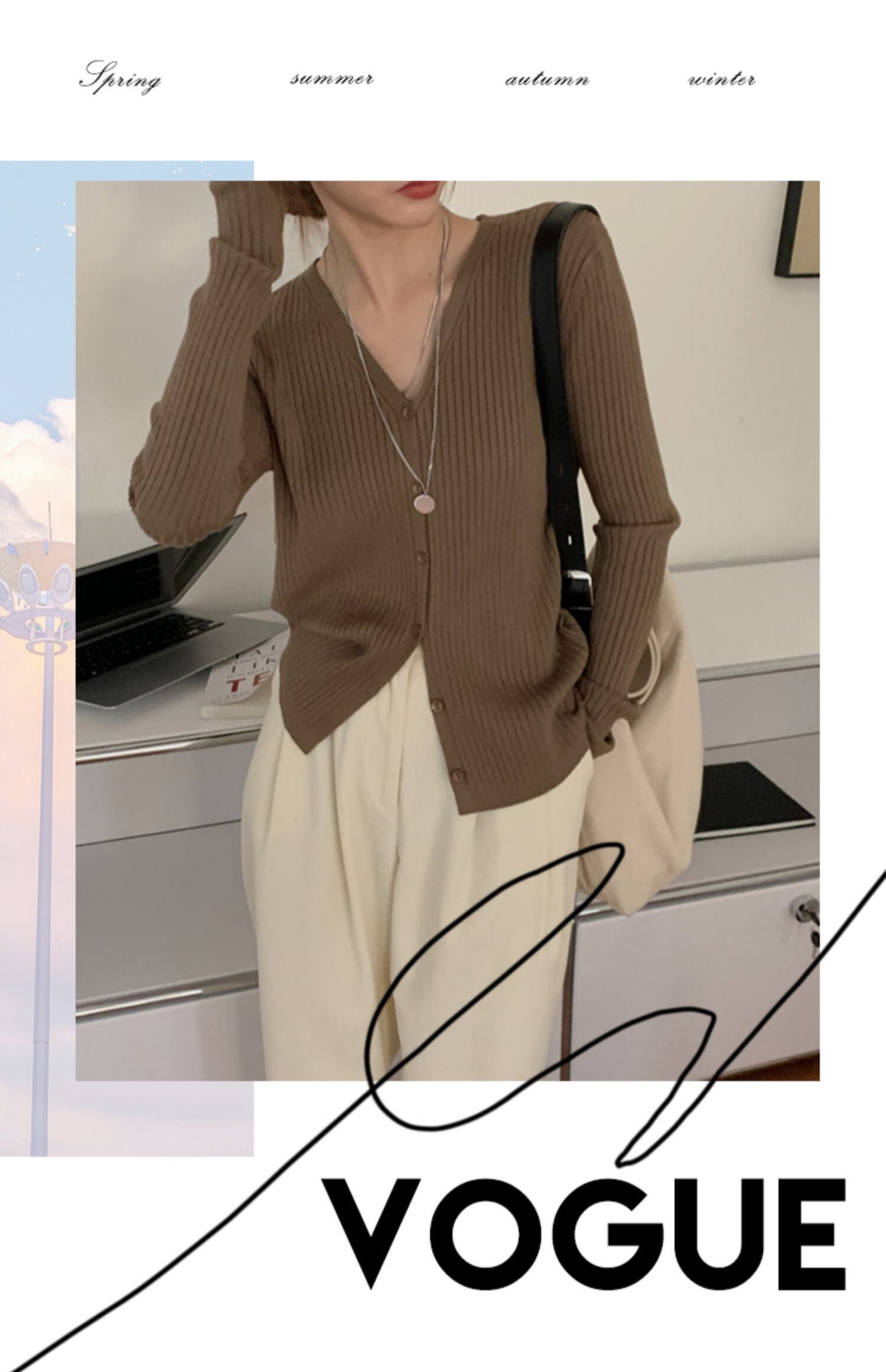 スタイルVネックニットカーディガン薄手セーター コート オータムスリムトップス ロング 秋物 モンロー73019677742