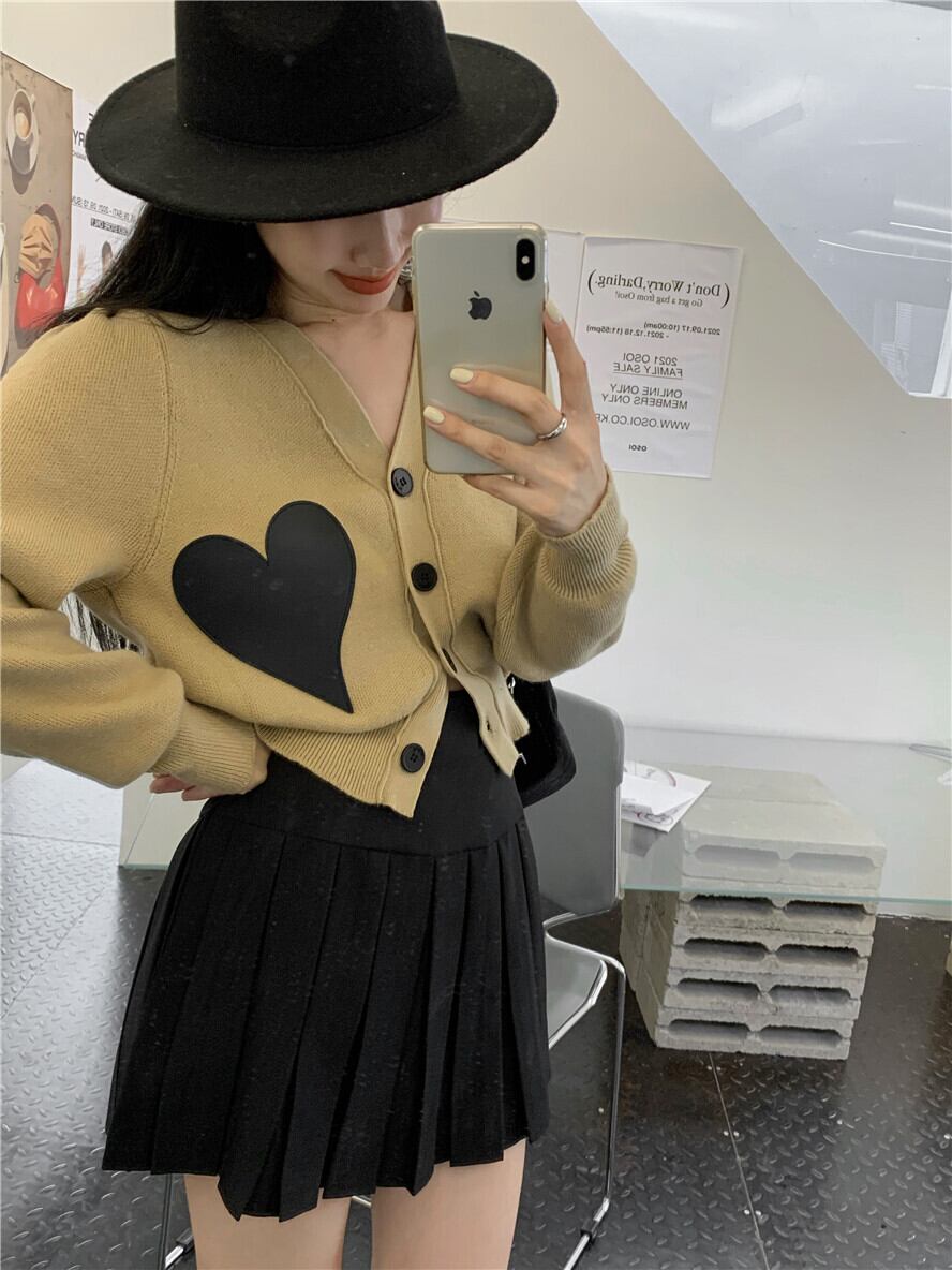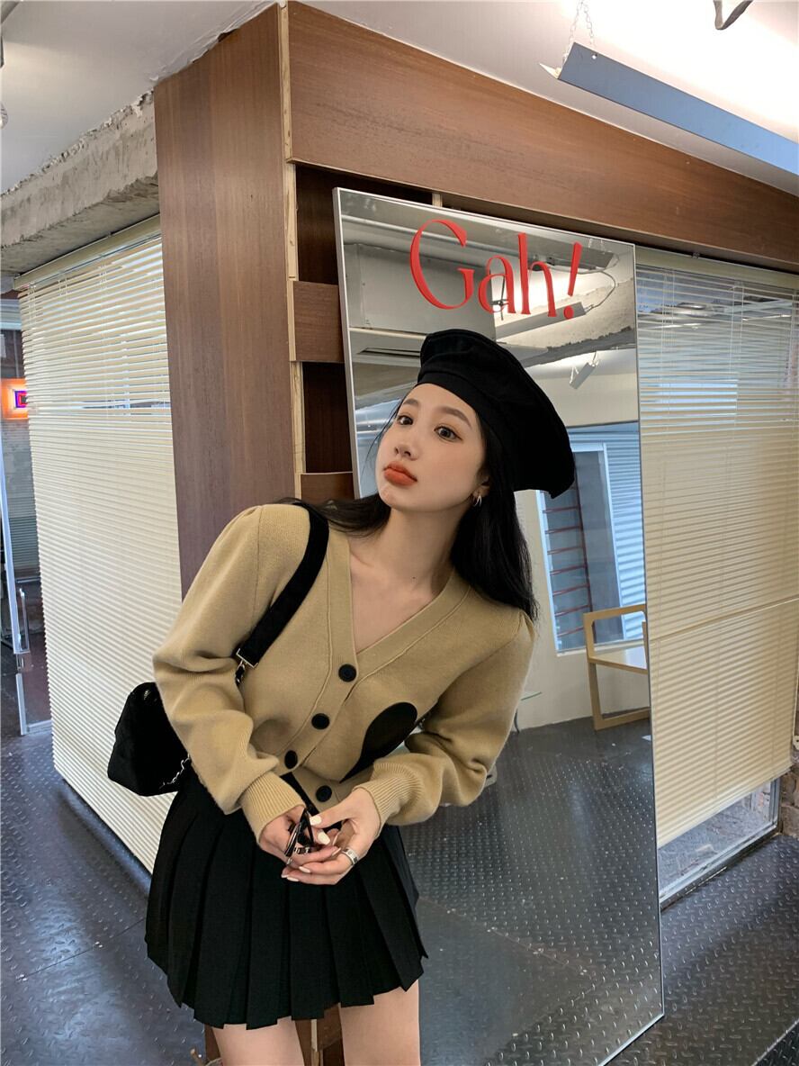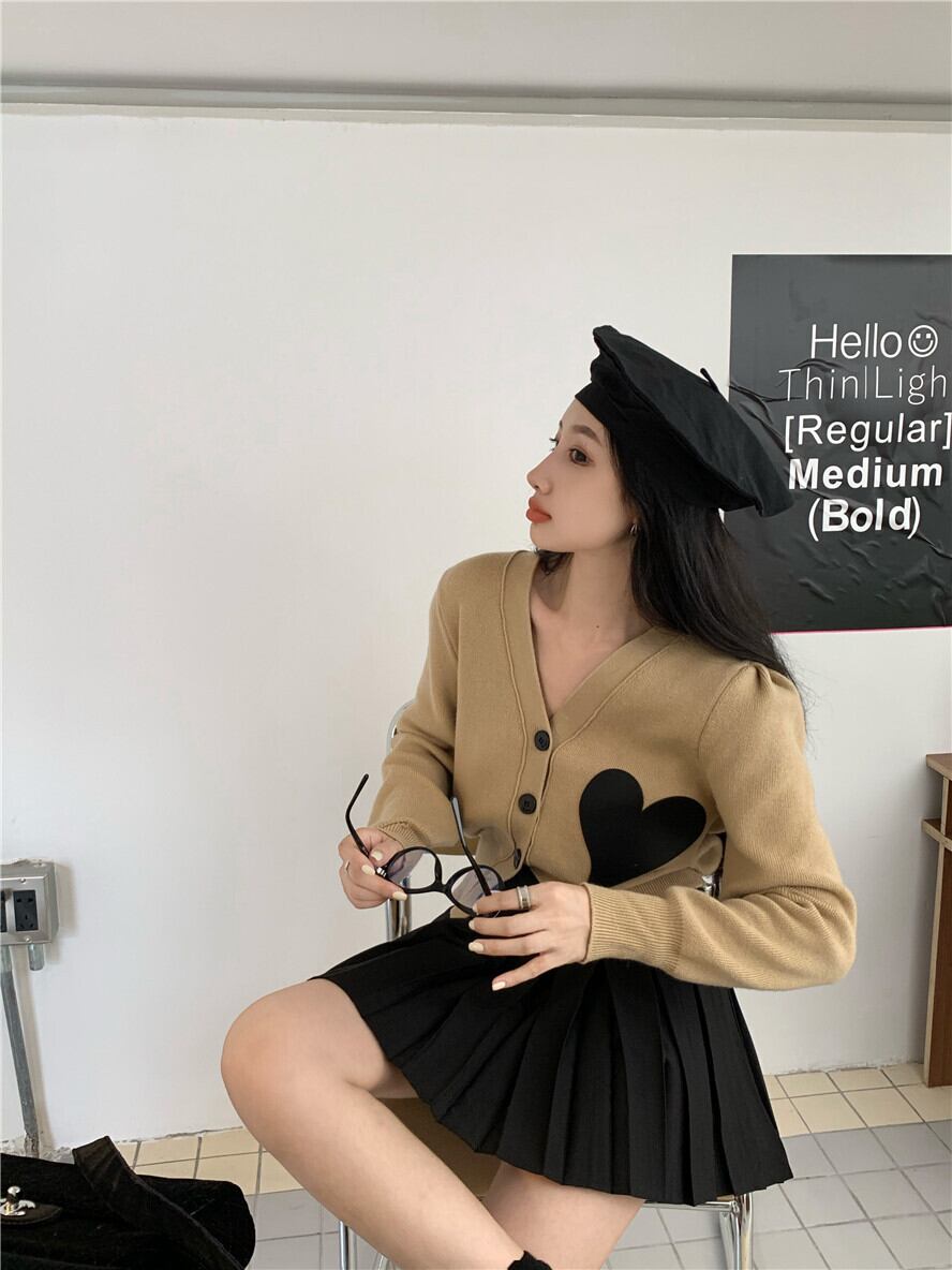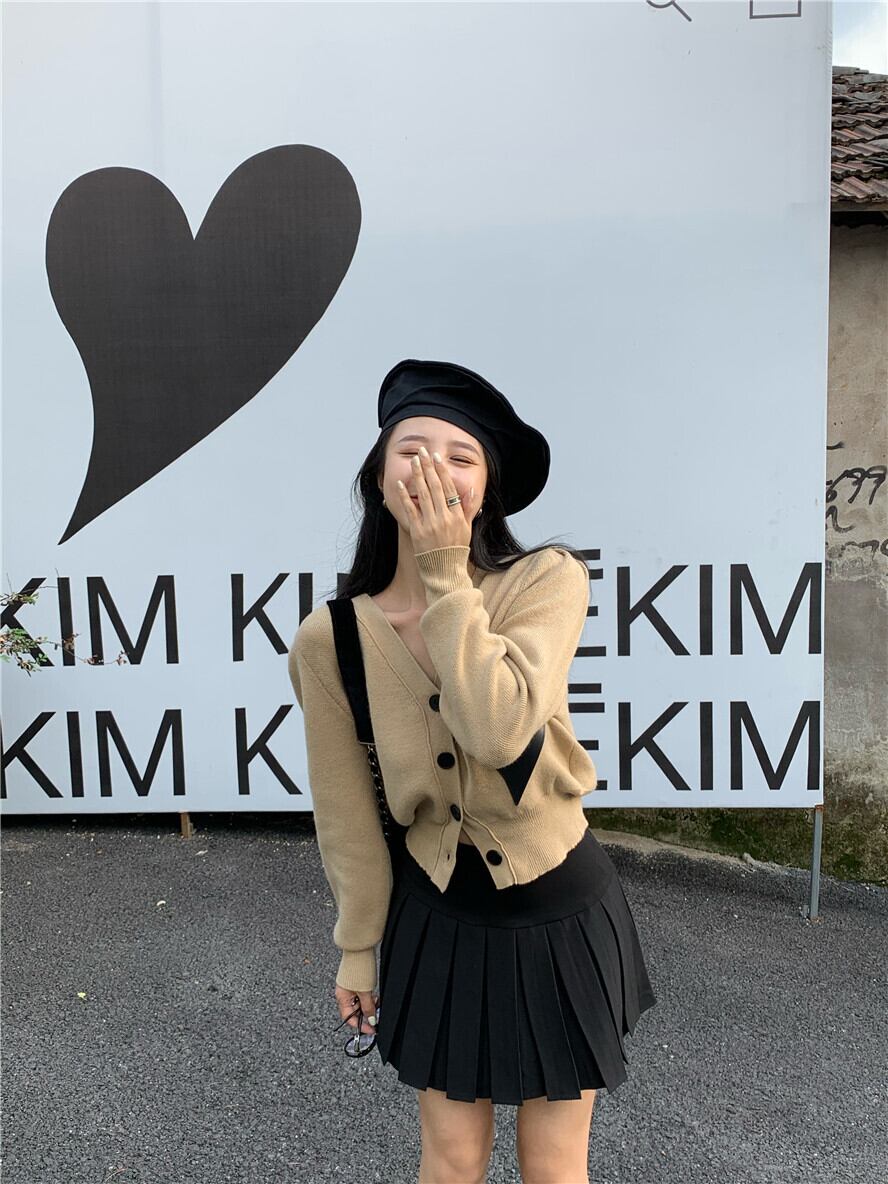 色:カーキセーター7767,黒のスカート1120