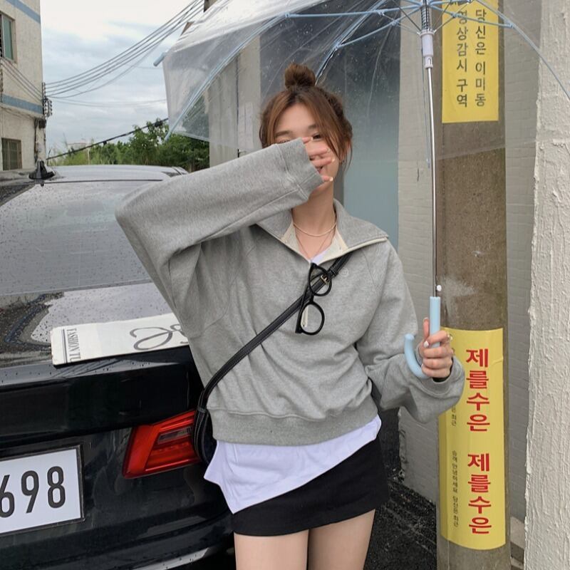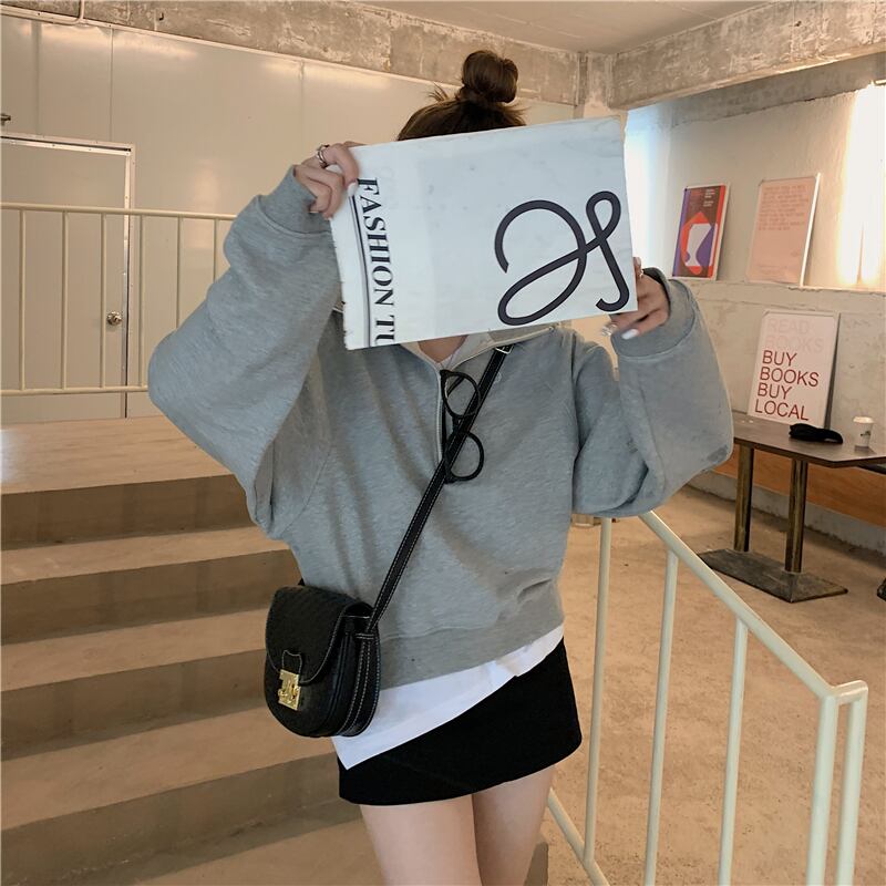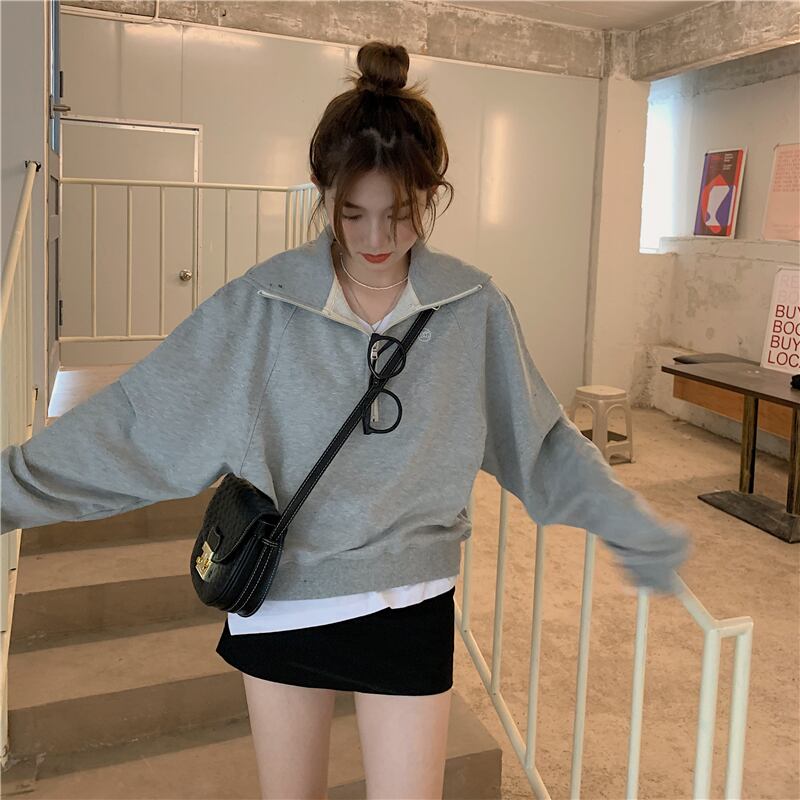 ルーズグレー薄手セーター ジャケット オータムカラートップス ロング 秋物 モンロー61695220316
