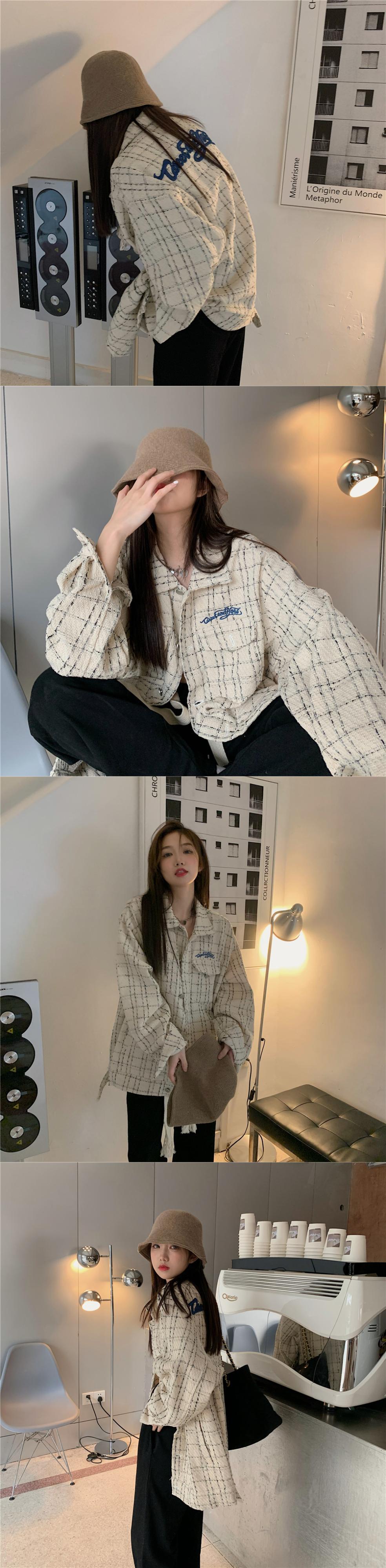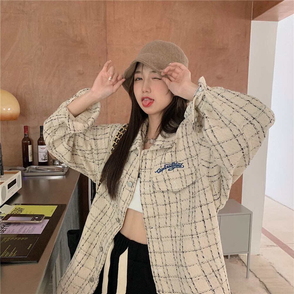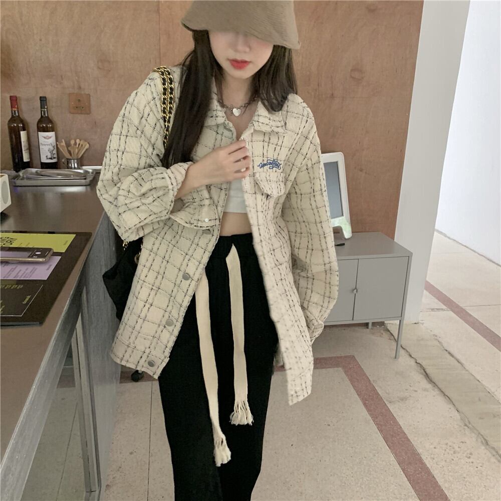 ルーズ格子柄スタンダードジャケット オータムトップス レトロ 秋物 モンロー4608625421