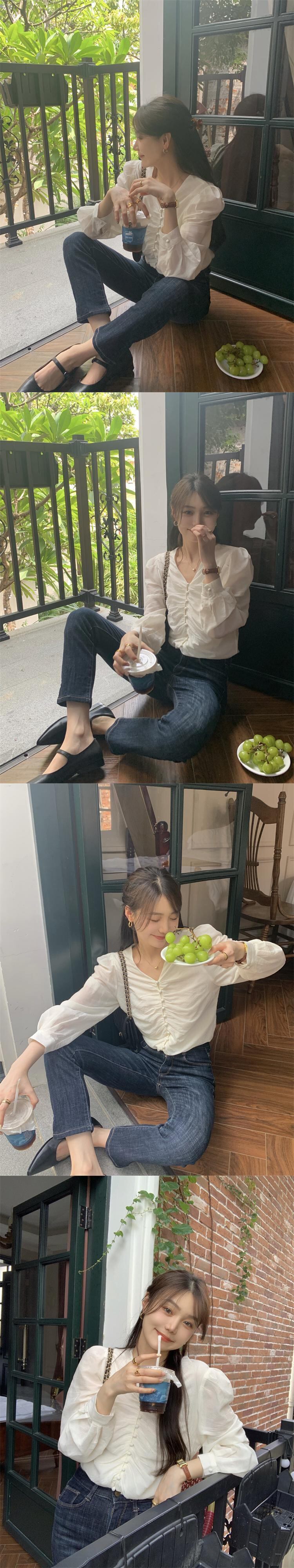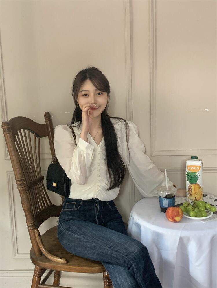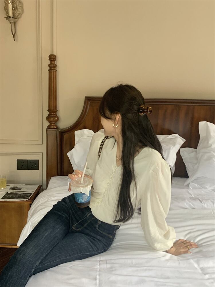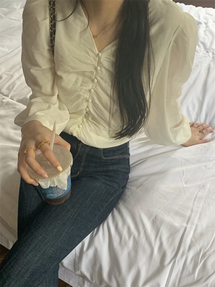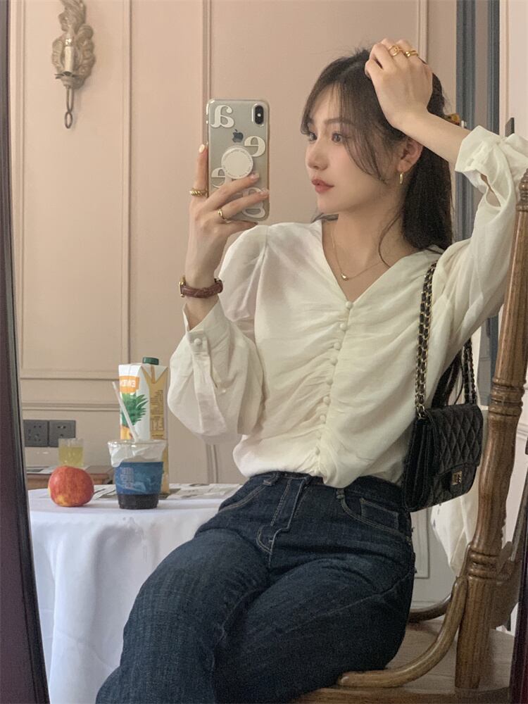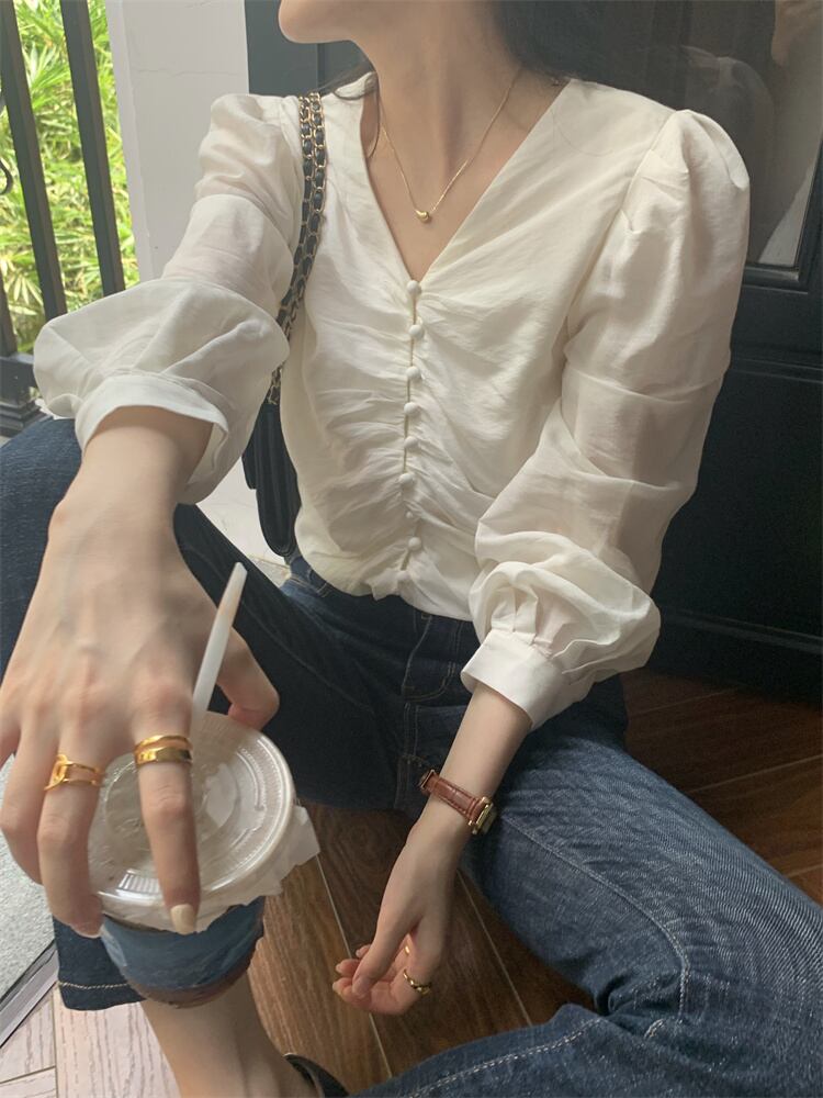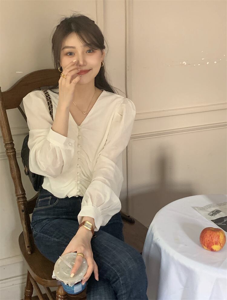 オータムホワイトVネックシャツ 薄手ジャケット トップス 大人ガーリー スウィート キュート カジュアル 秋物 モンロー62371372139