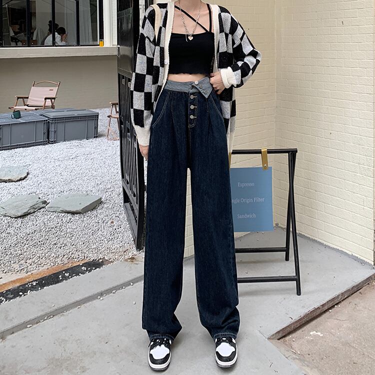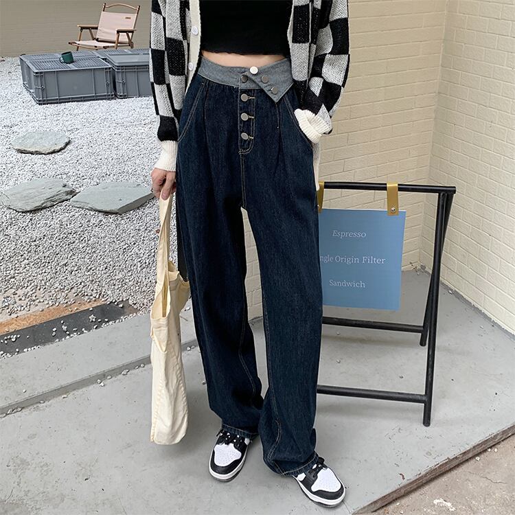 ハイウェスト薄手ブルージーンズ スプリングオータムルーズパンツ 春物 秋物 モンロー55088500824