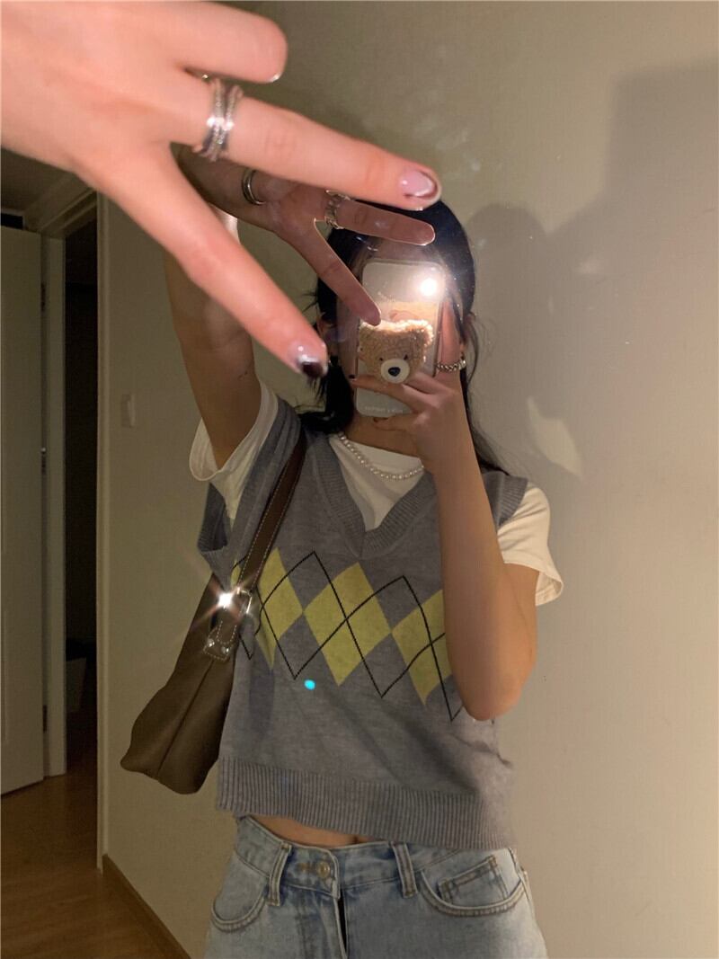 Vネックニットショートジャケット スプリングサマーセーター 春物 夏物 モンロー40209961824