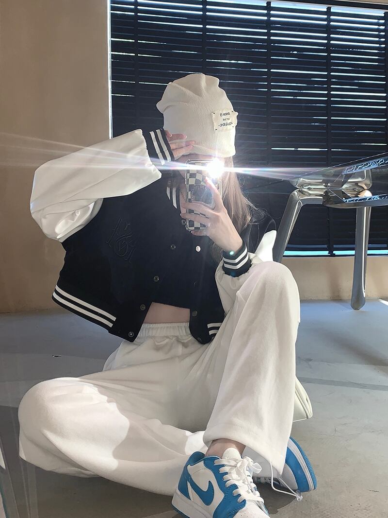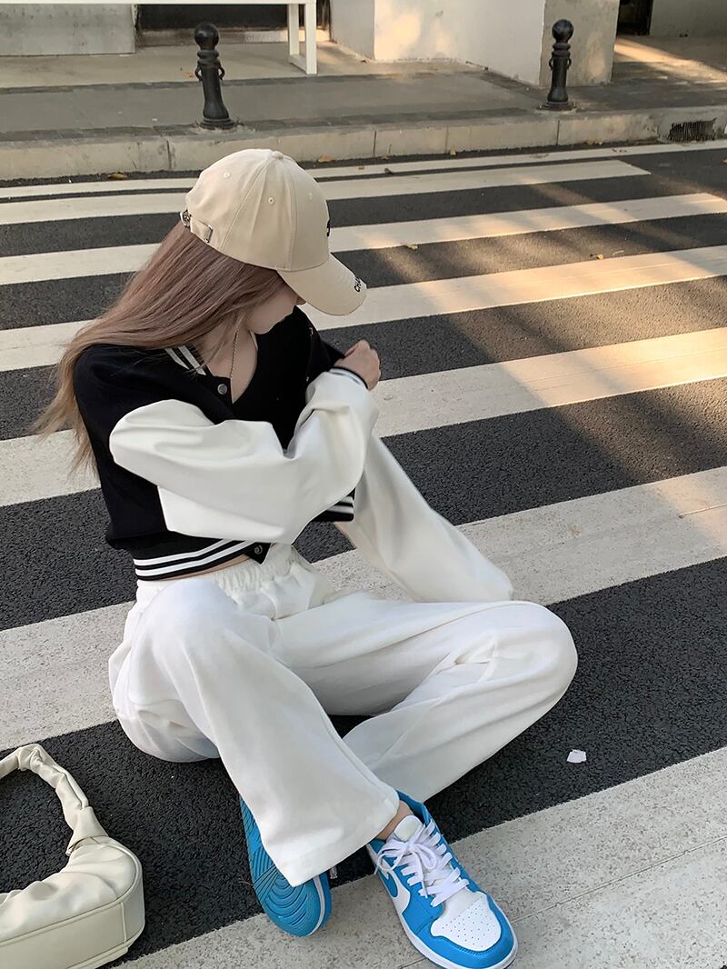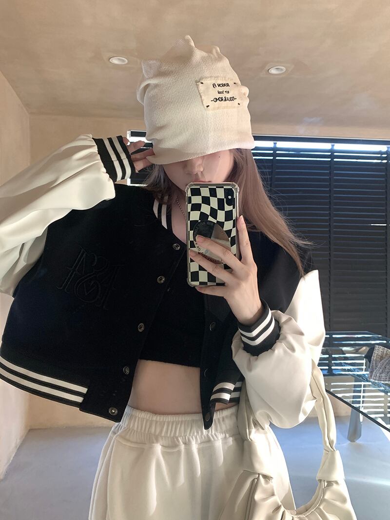ショートルーズジャケット カジュアルオータムVネックトップス 秋物 モンロー190852735