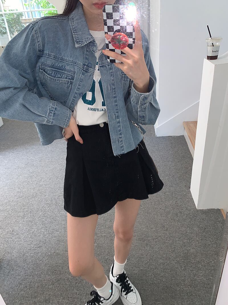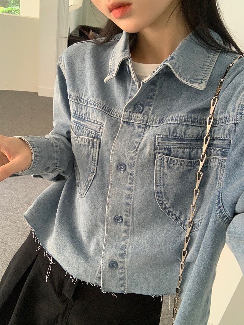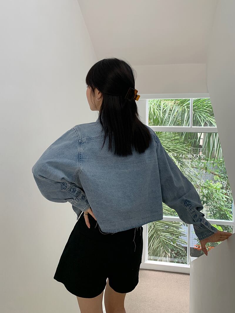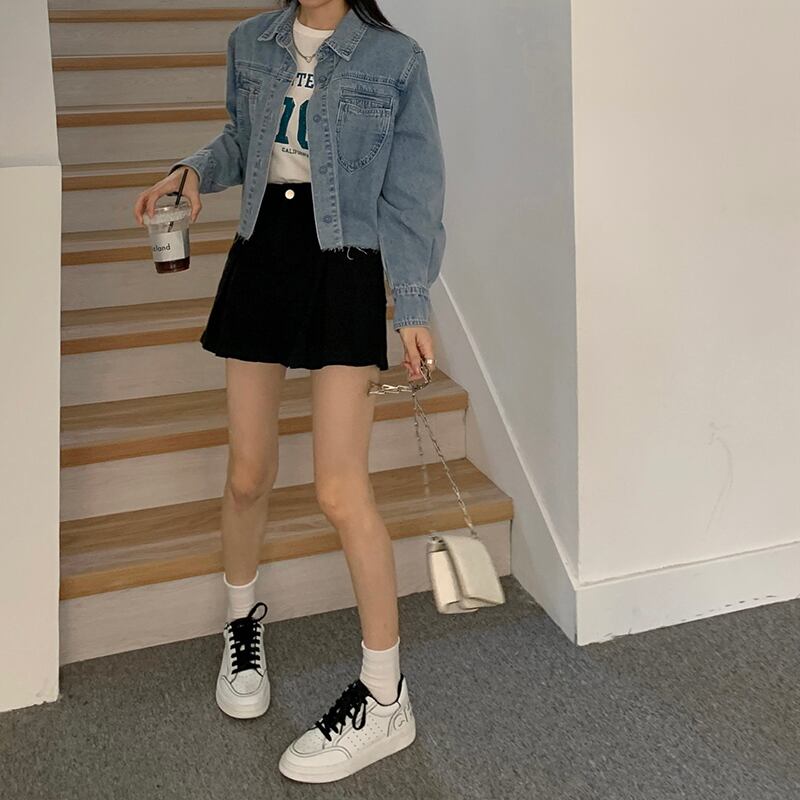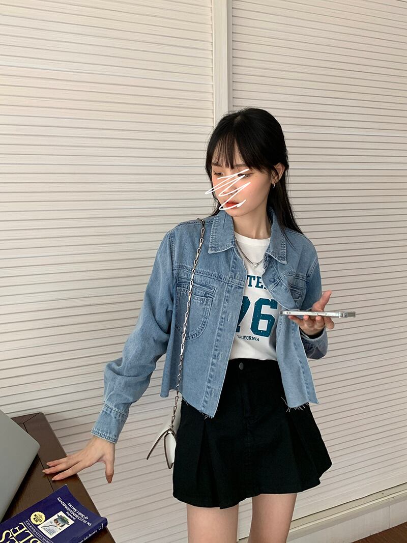 スタンダードショートジャケット オータムブルーカジュアルトップス レトロ 秋物 モンロー40919956426