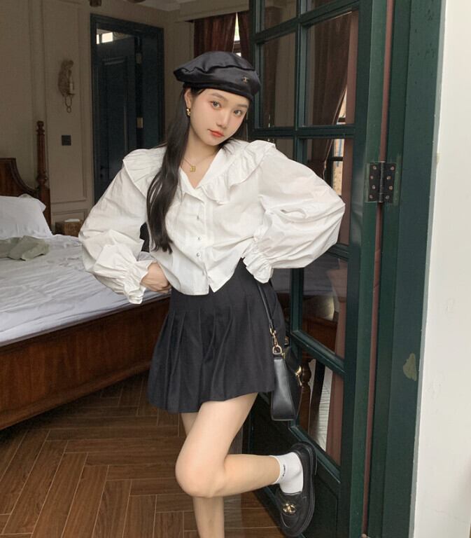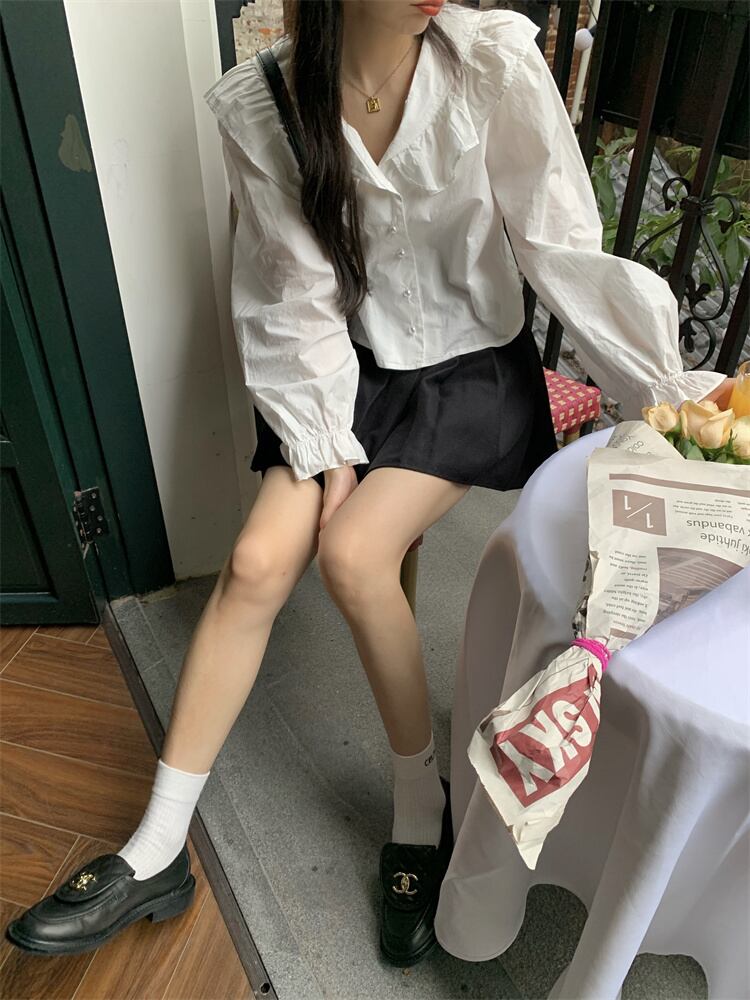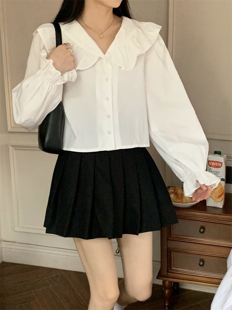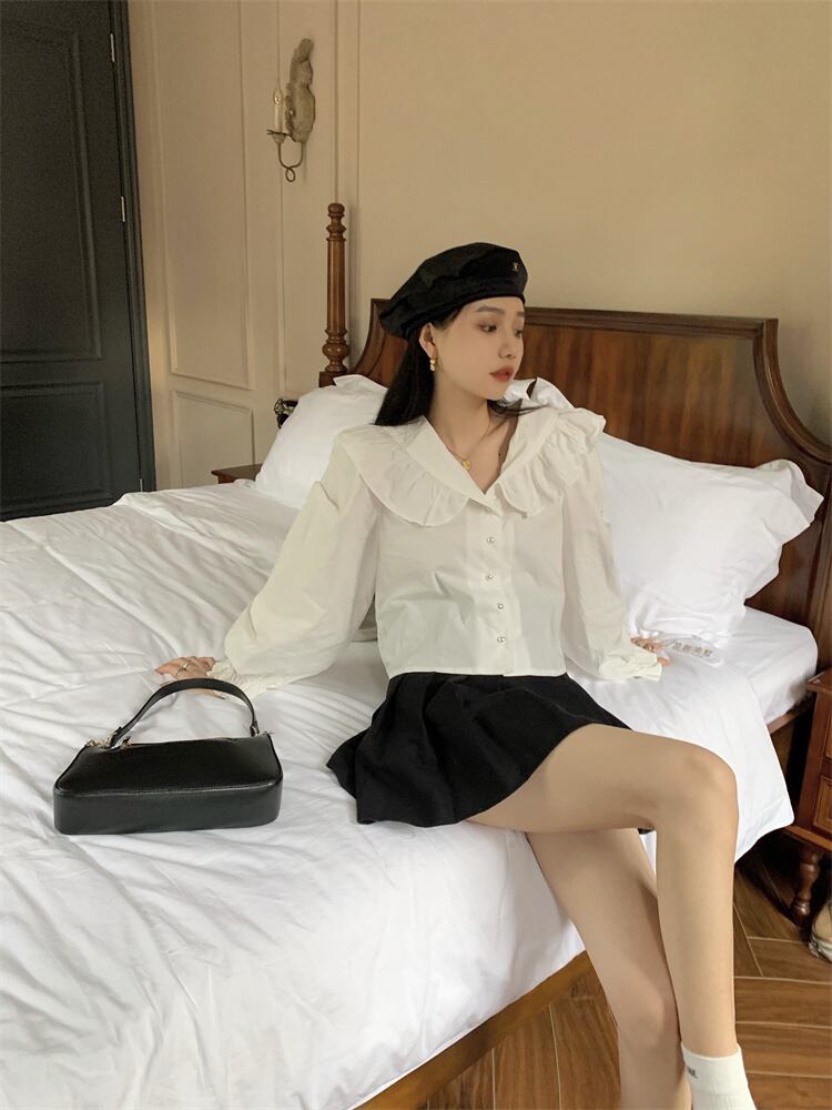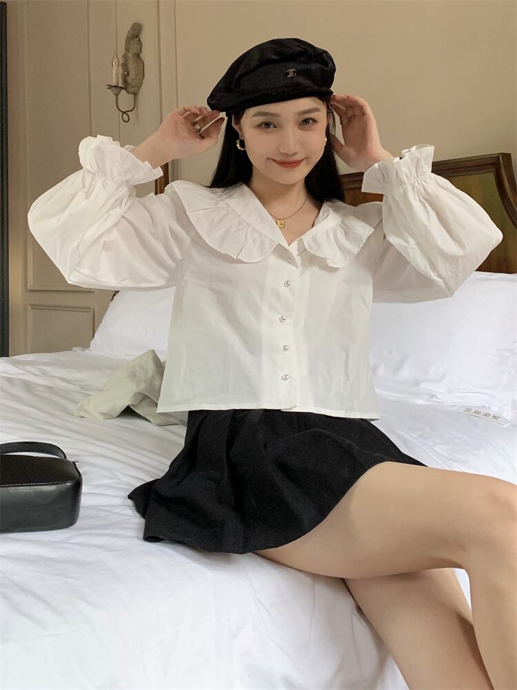 カラーシャツ オータムショートトップス ロング 大人ガーリー スウィート キュート カジュアル 秋物 モンロー85916682013