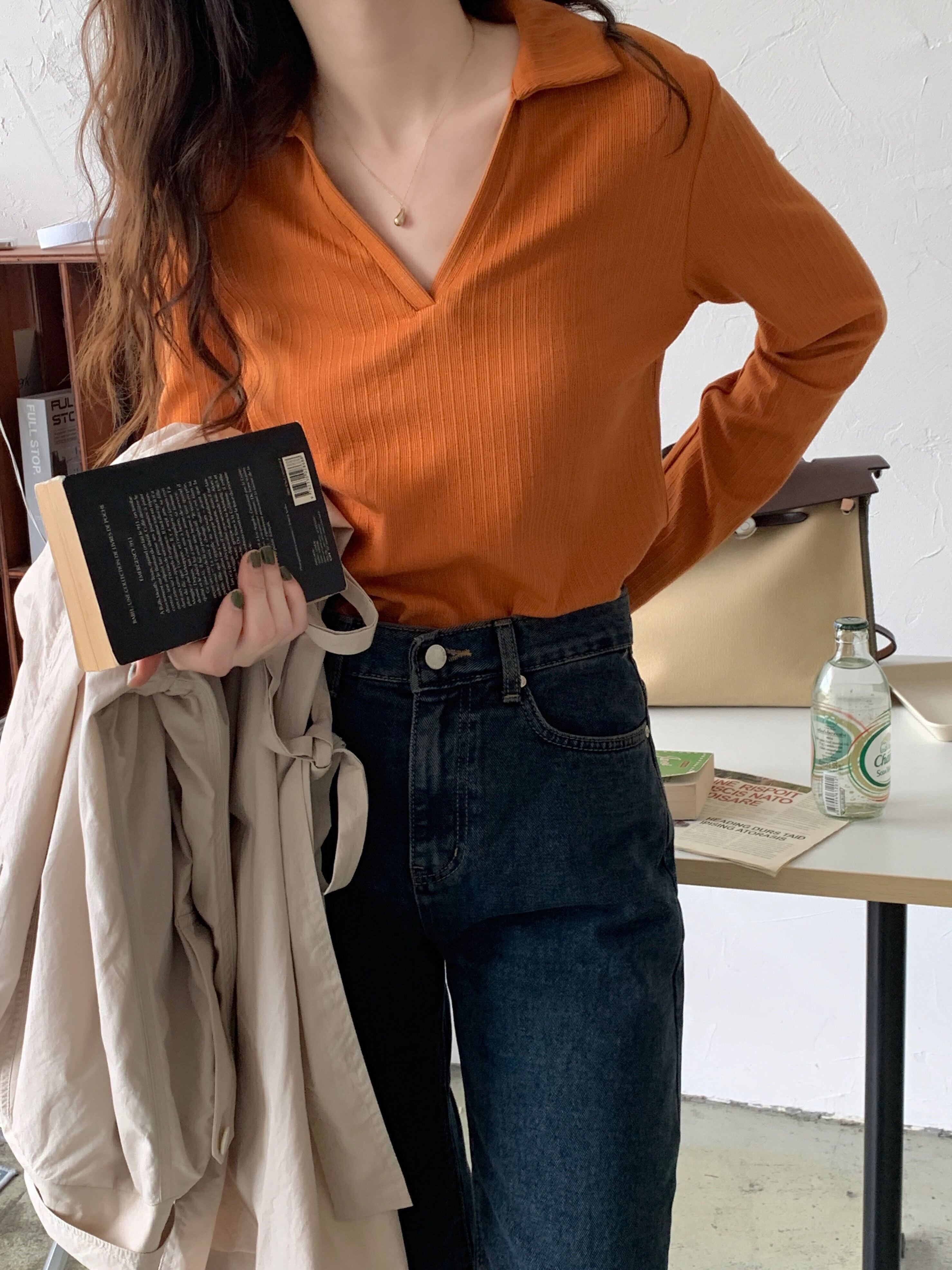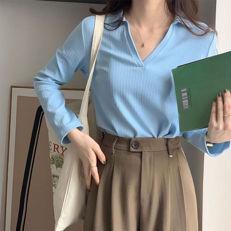 オータムカラーTシャツ ホワイトルーズトップス スタンダード ロング レトロ 秋物 モンロー81372913523