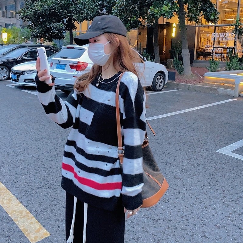 スタイルスタンダードストライプニットセーター コート オータムプルオーバー トップス レトロ 秋物 モンロー26086544901