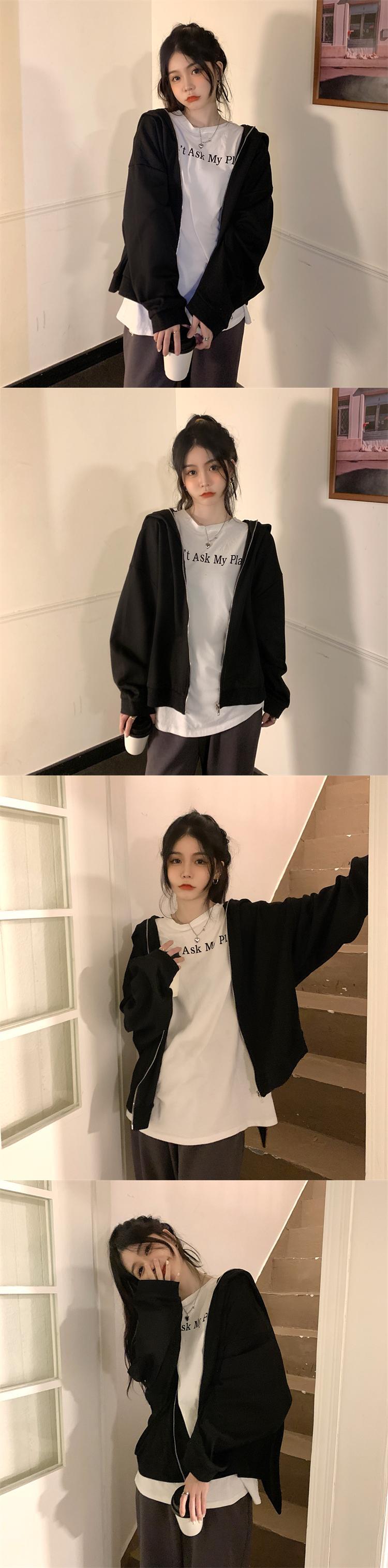 オータムルーズ薄手セーター ジャケット カジュアルフードトップス ロング 秋物 モンロー16083397839