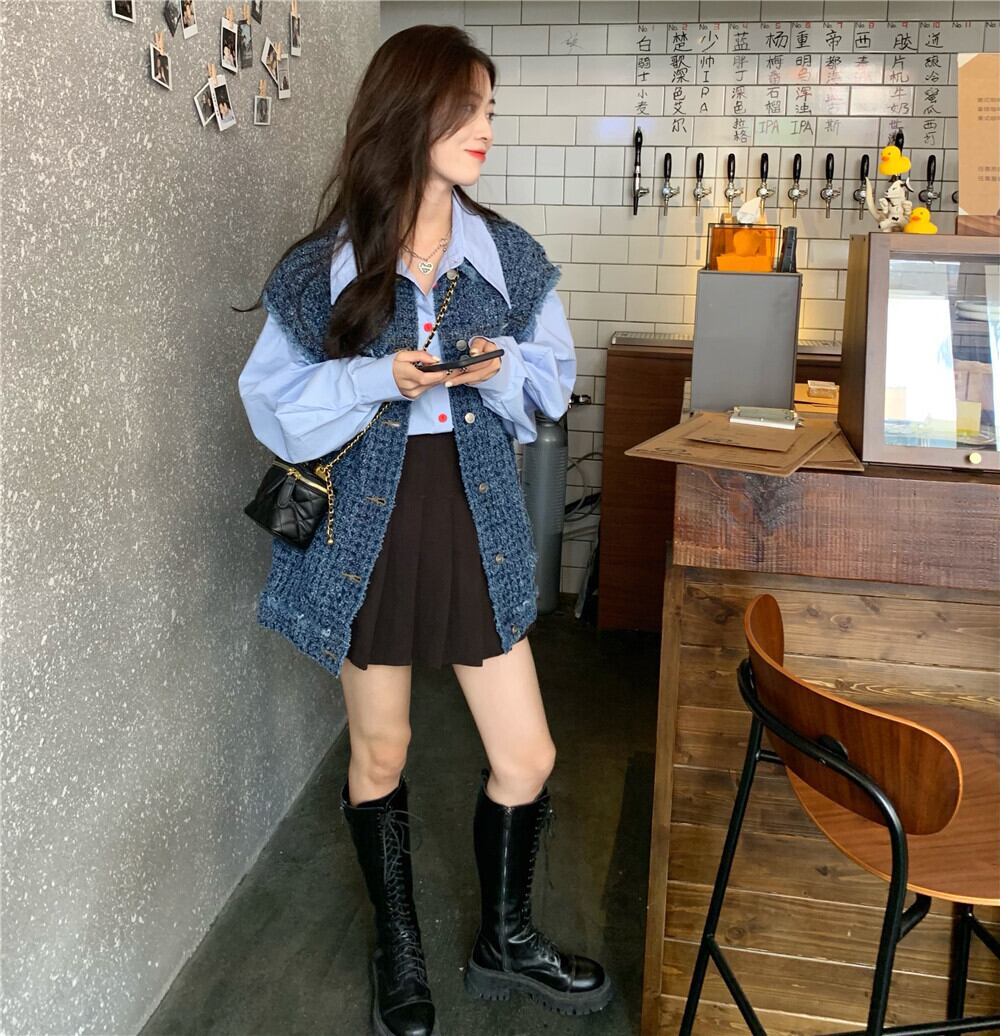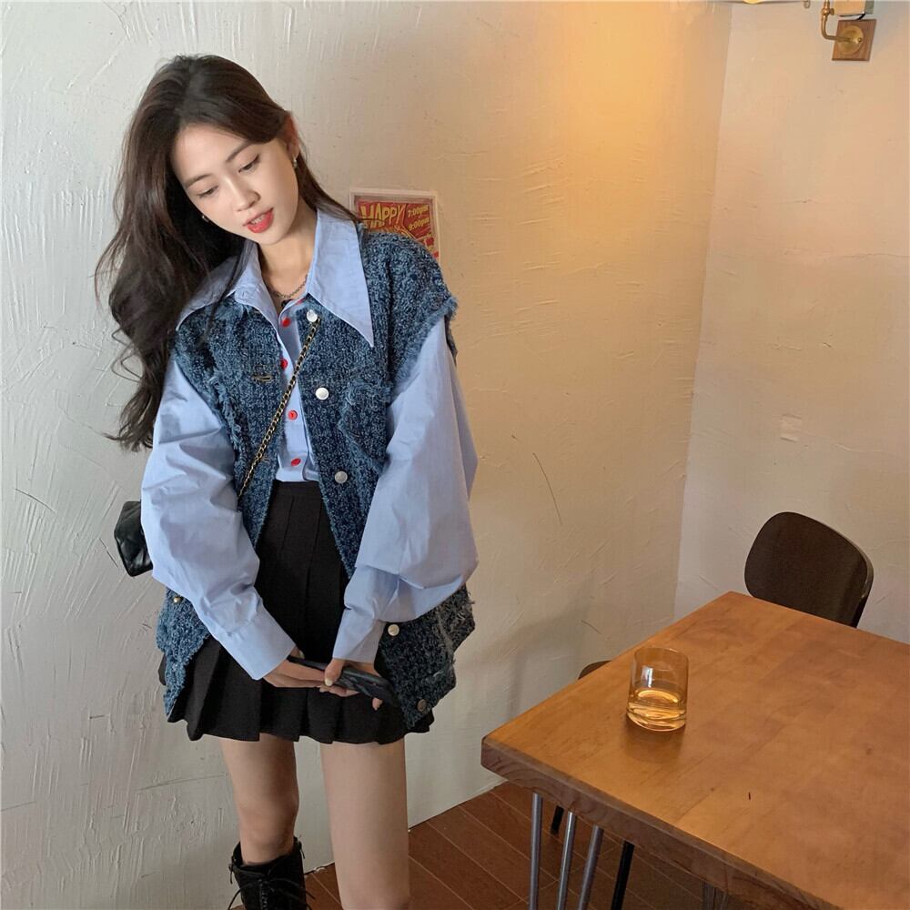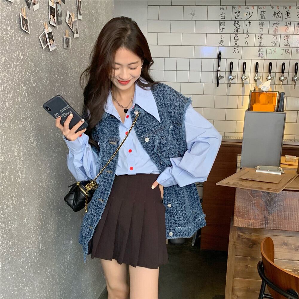 色:青いベスト,青いシャツ
