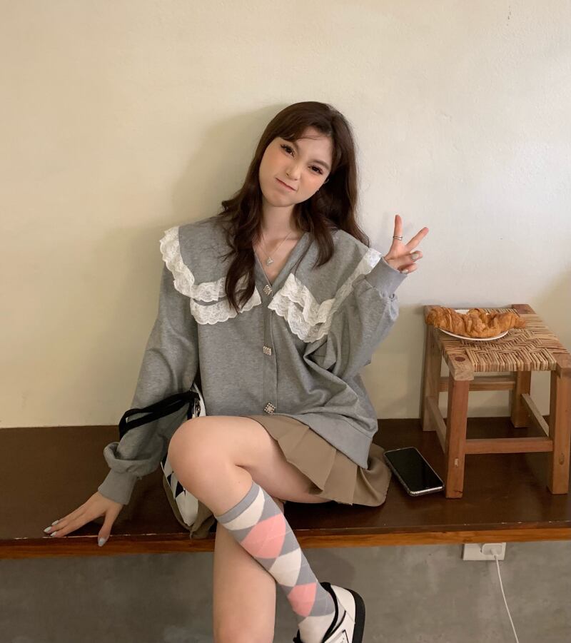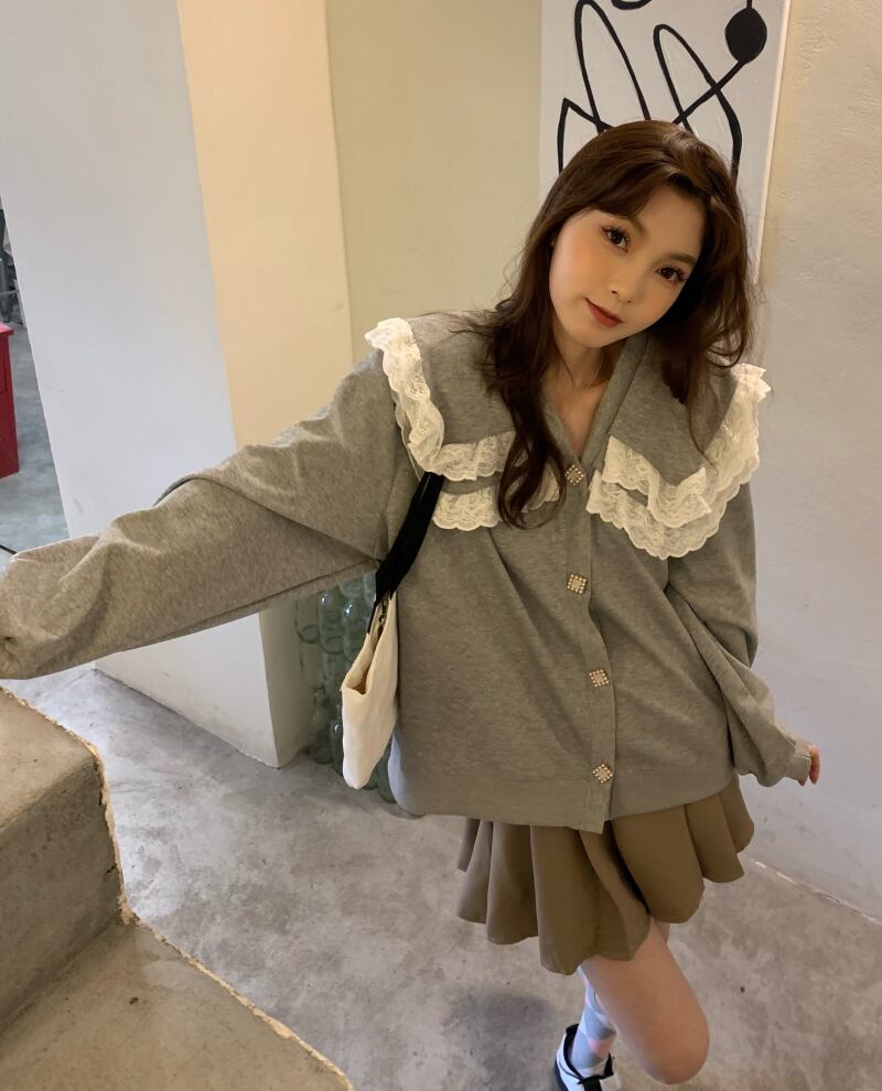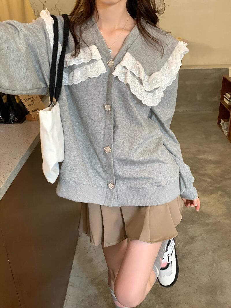 レースカラールーズ薄手セーター ジャケット レディースオータムグレーカジュアル 秋物 モンロー88869532896