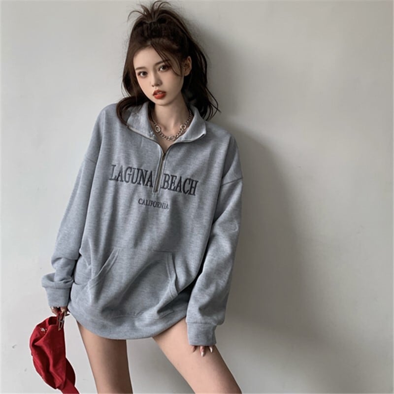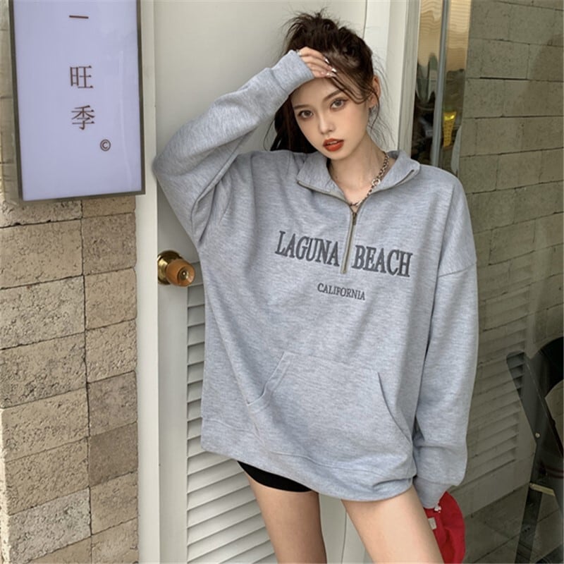 グレーセーター コート オータムルーズプルオーバー トップス ロング ストリート 秋物 モンロー9065947565