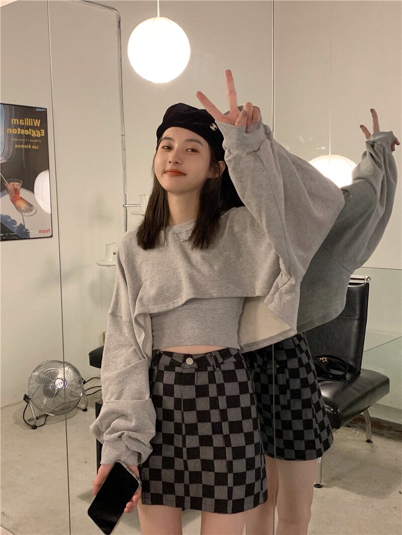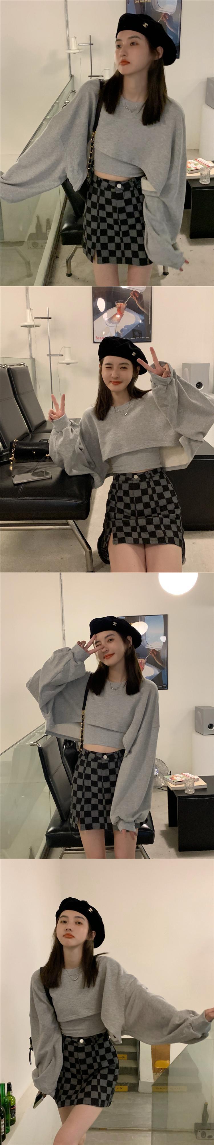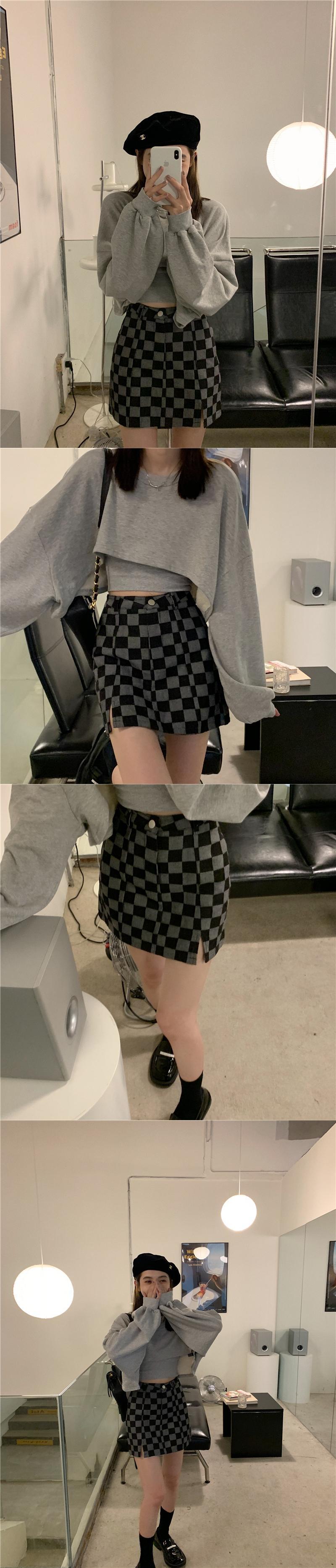 色:グレーブラウス,グレースリング,チェック柄スカート