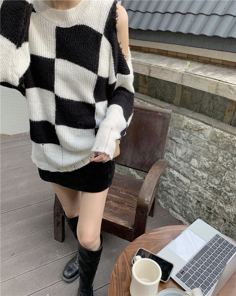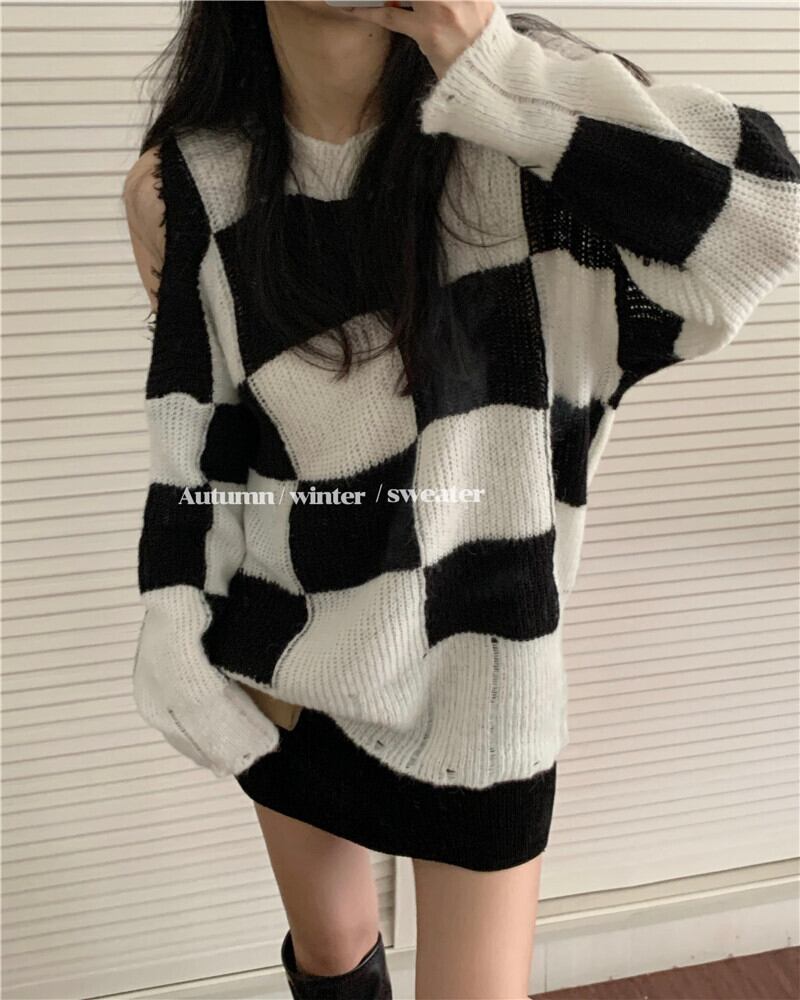 オータムルーズプルオーバー セーター レディースコート ブラックホワイトトップス 秋物 モンロー78473032929