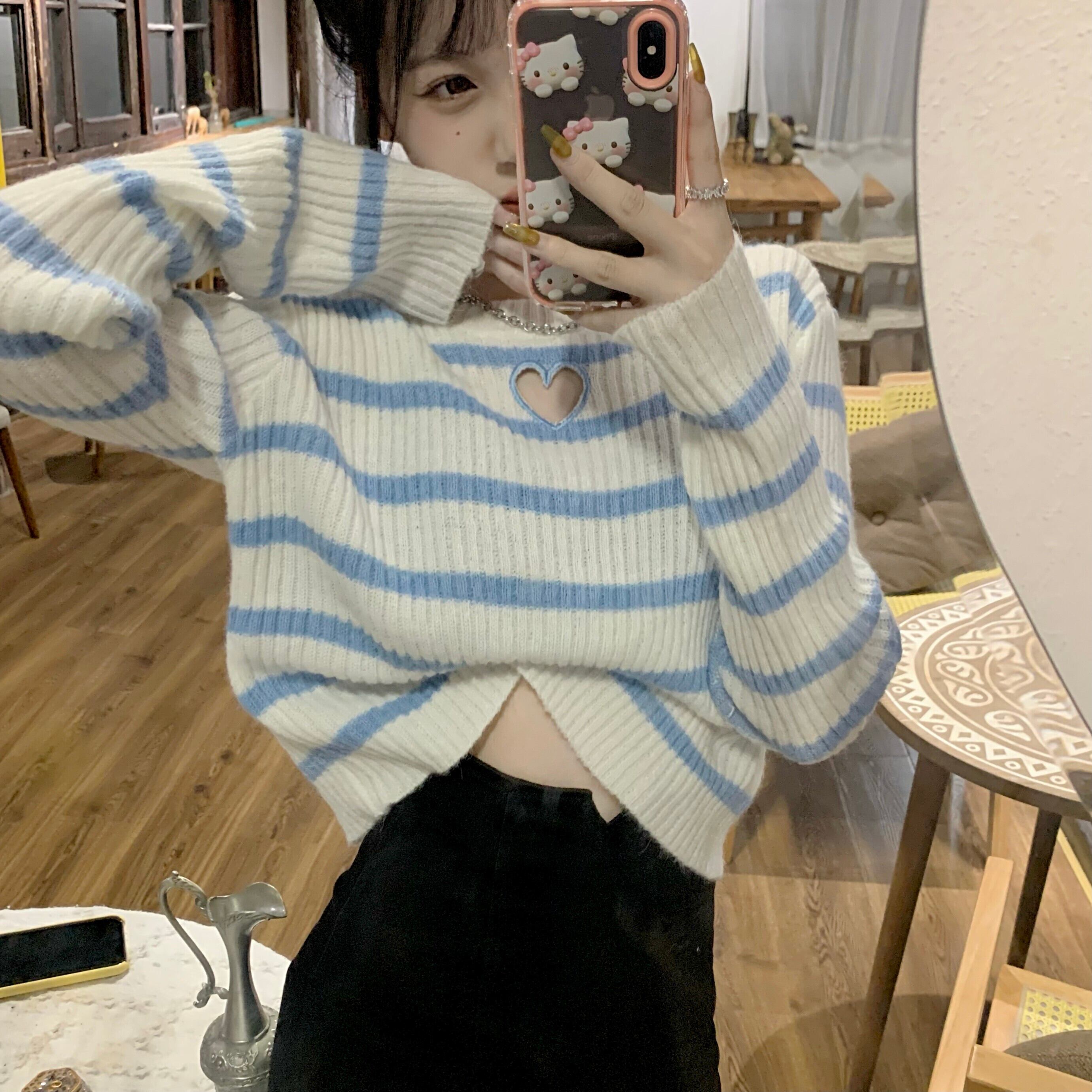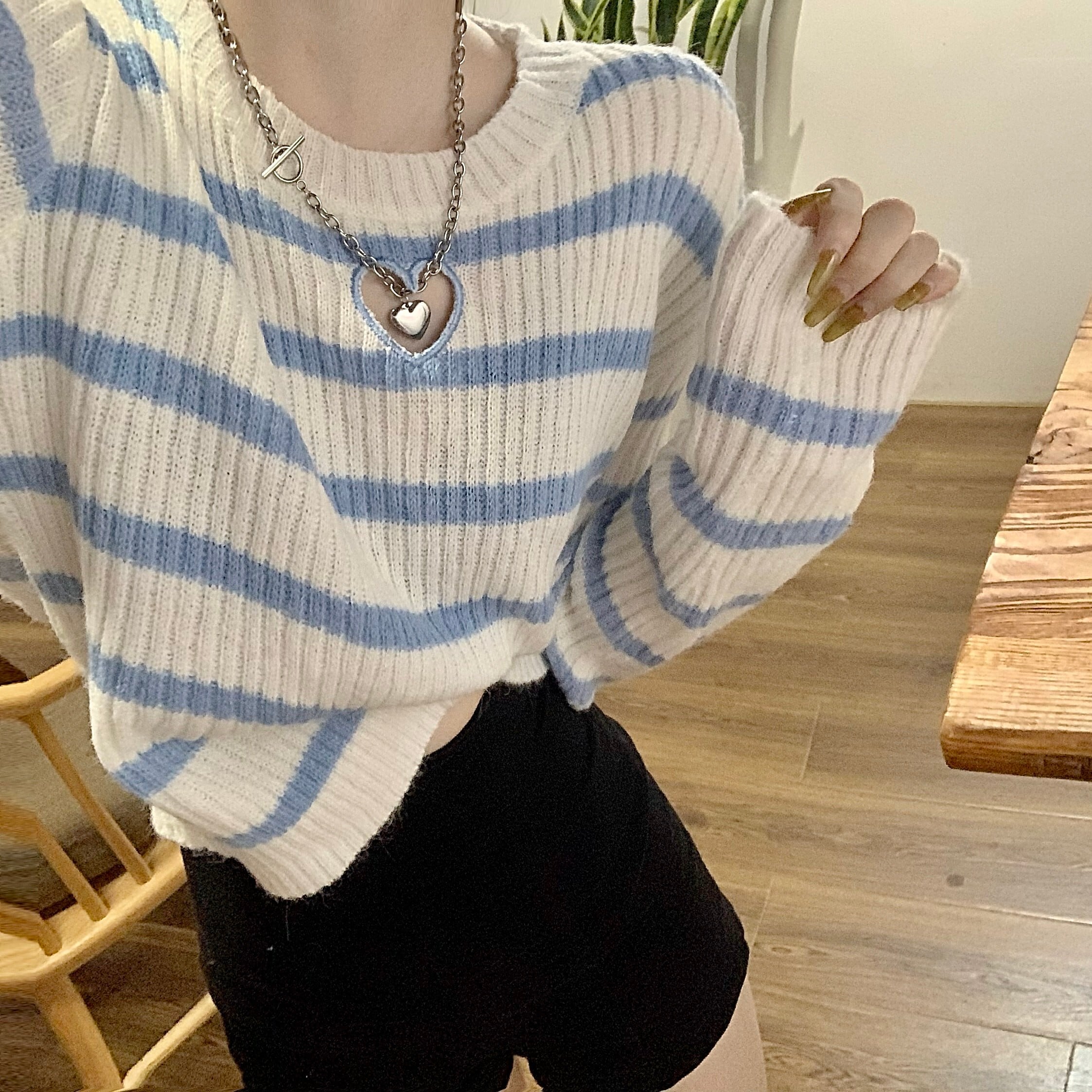 オータムストライプスリムニット 秋物 モンロー51762702952