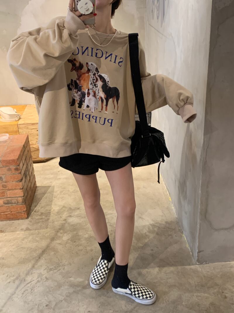 オータムスタンダードプリント柄ルーズセーター ロング レトロ 秋物 モンロー86000012179